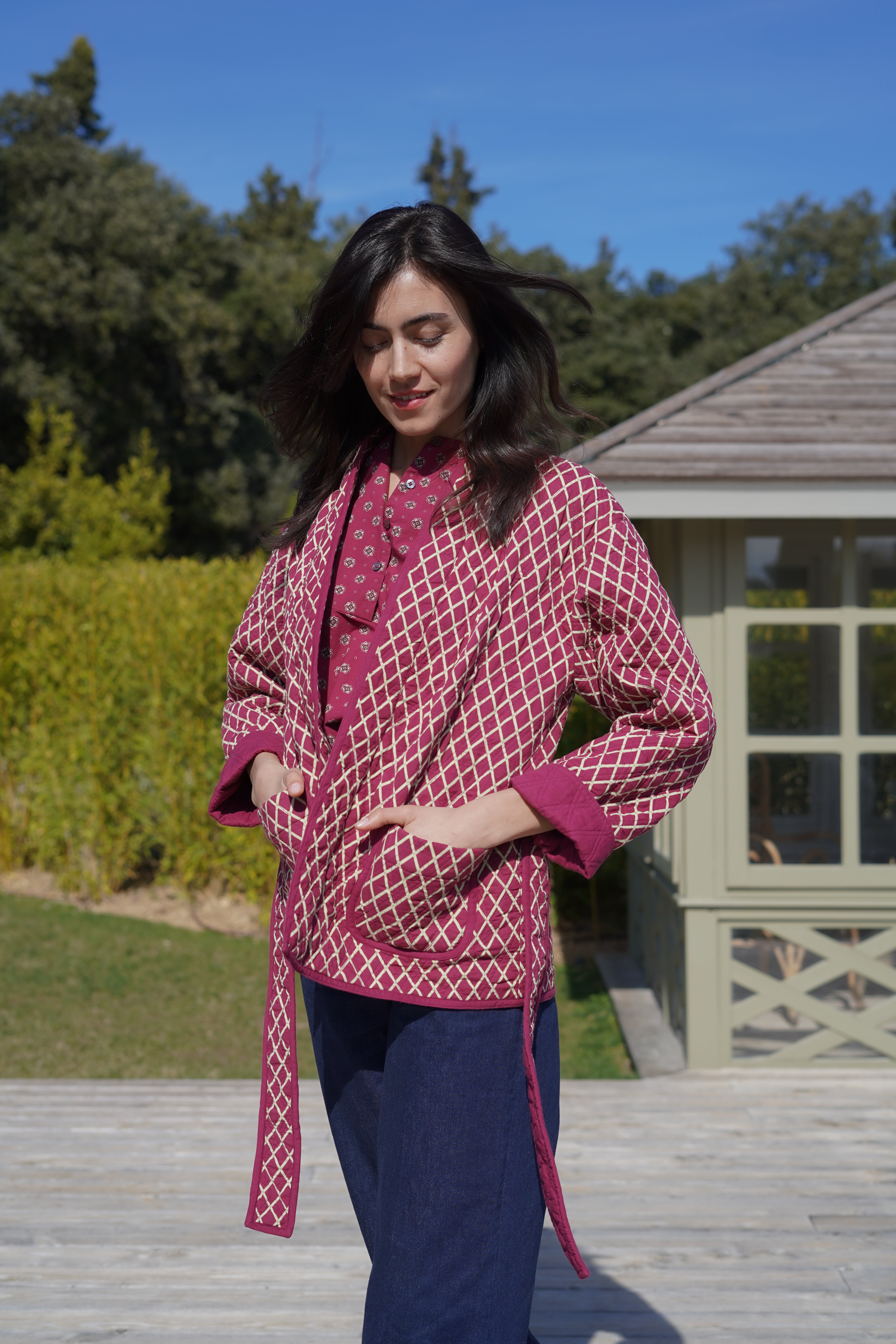 Veste Kimono Losange Framboise