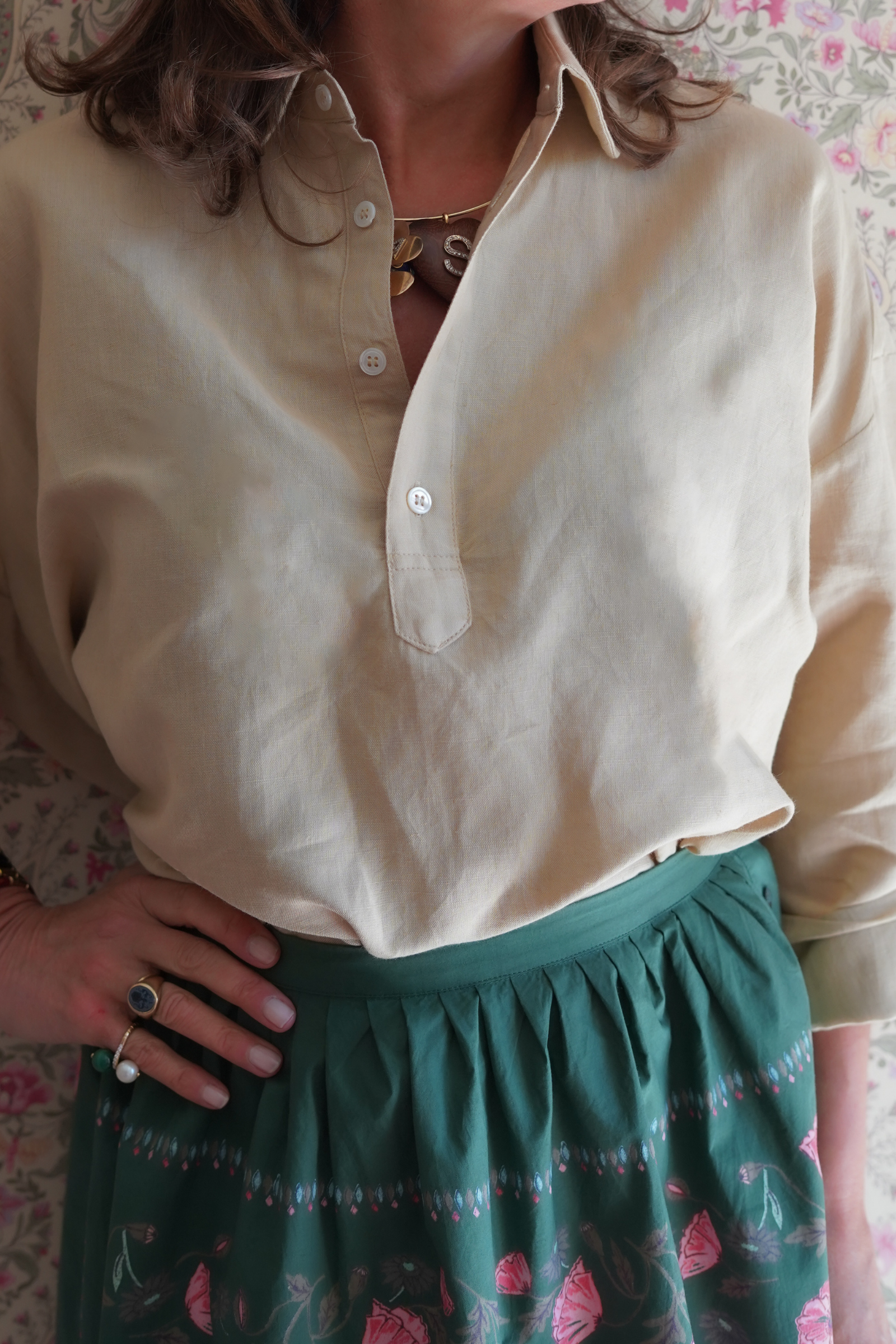 Veste Ramatuelle en soie Paisley Bronze Fond Bordeaux