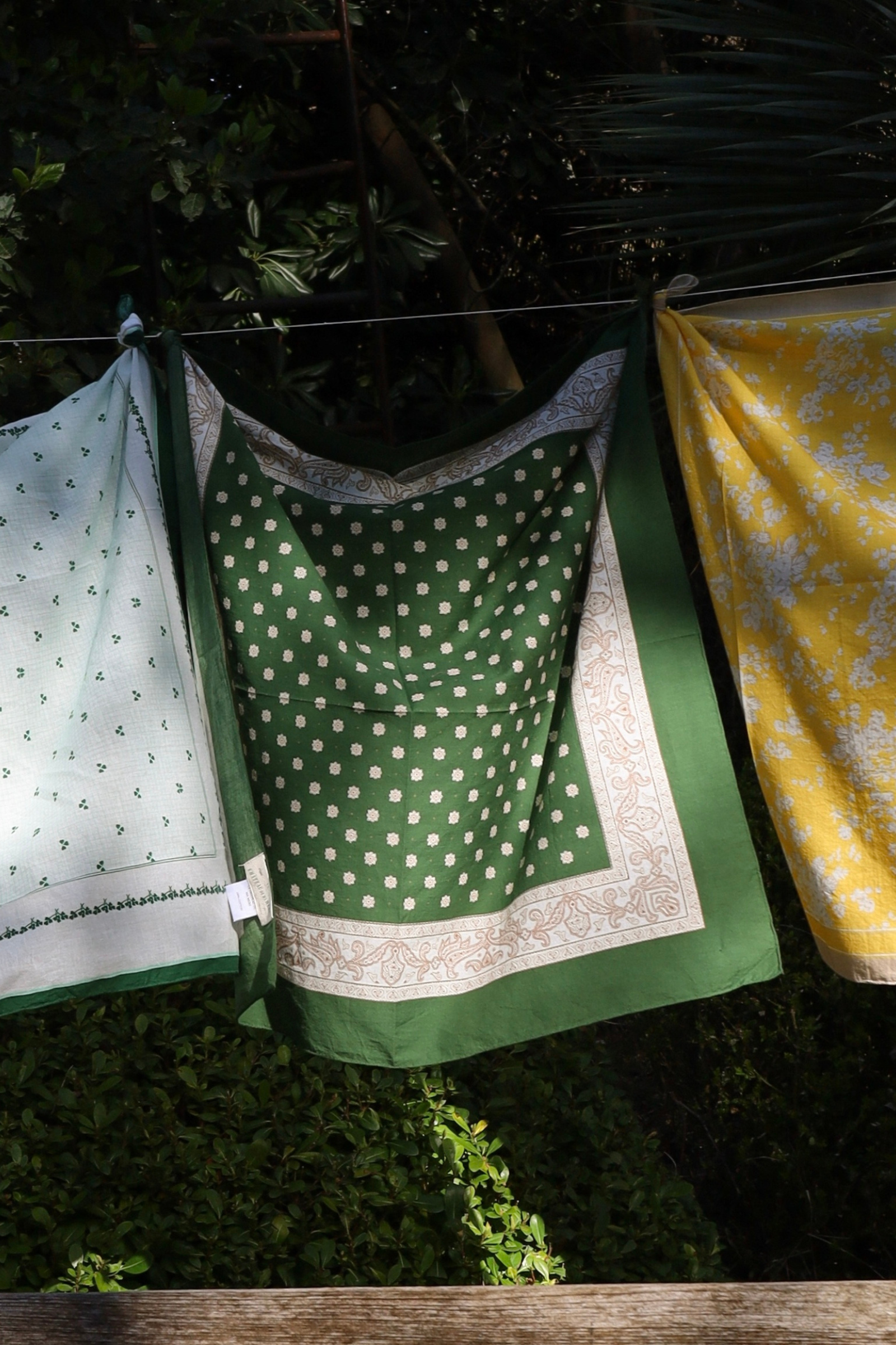 Bandana en coton carré à motifs Mouche Vert.
