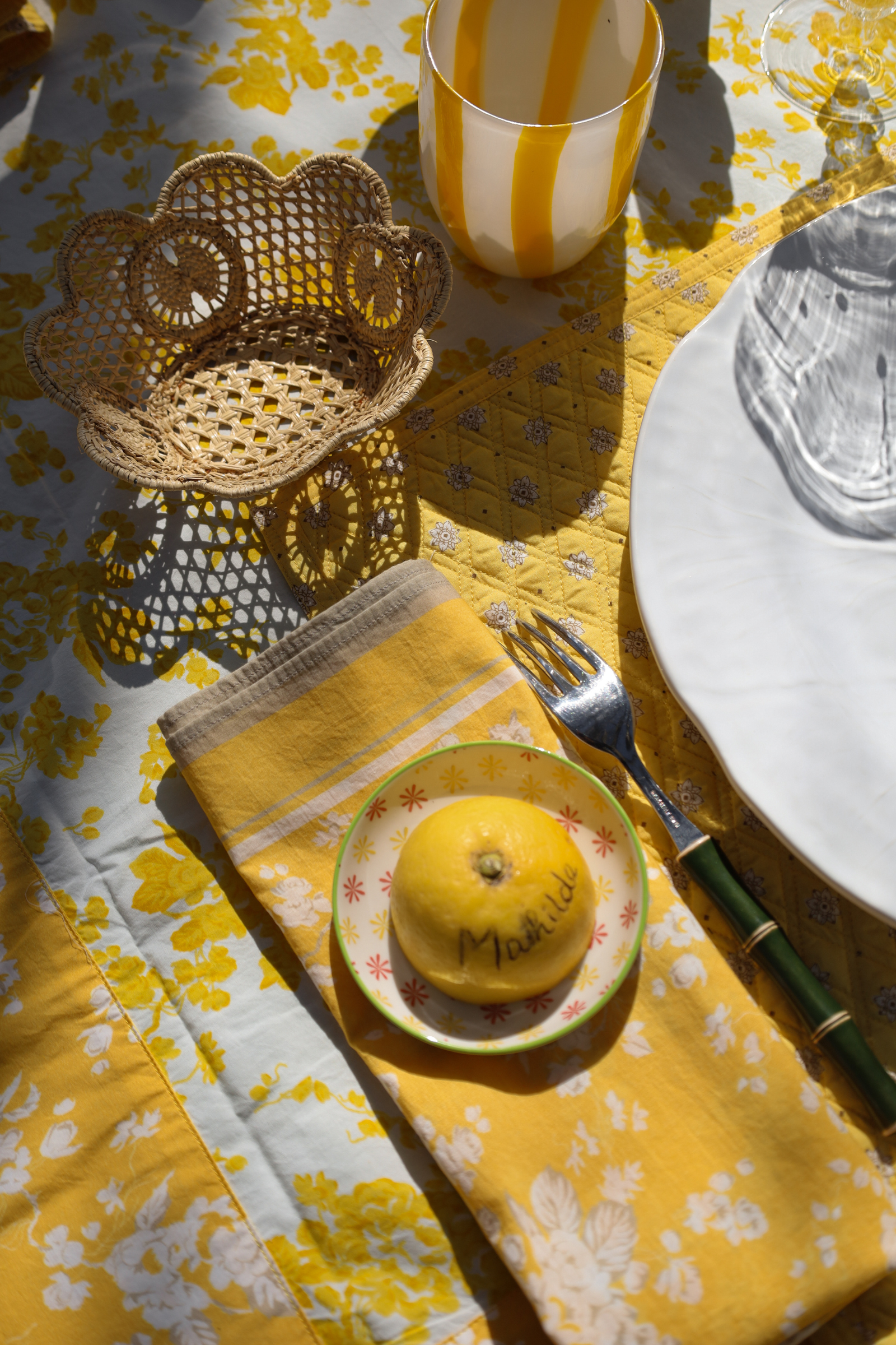 Serviette de table en coton imprimées Fleur Jaune.