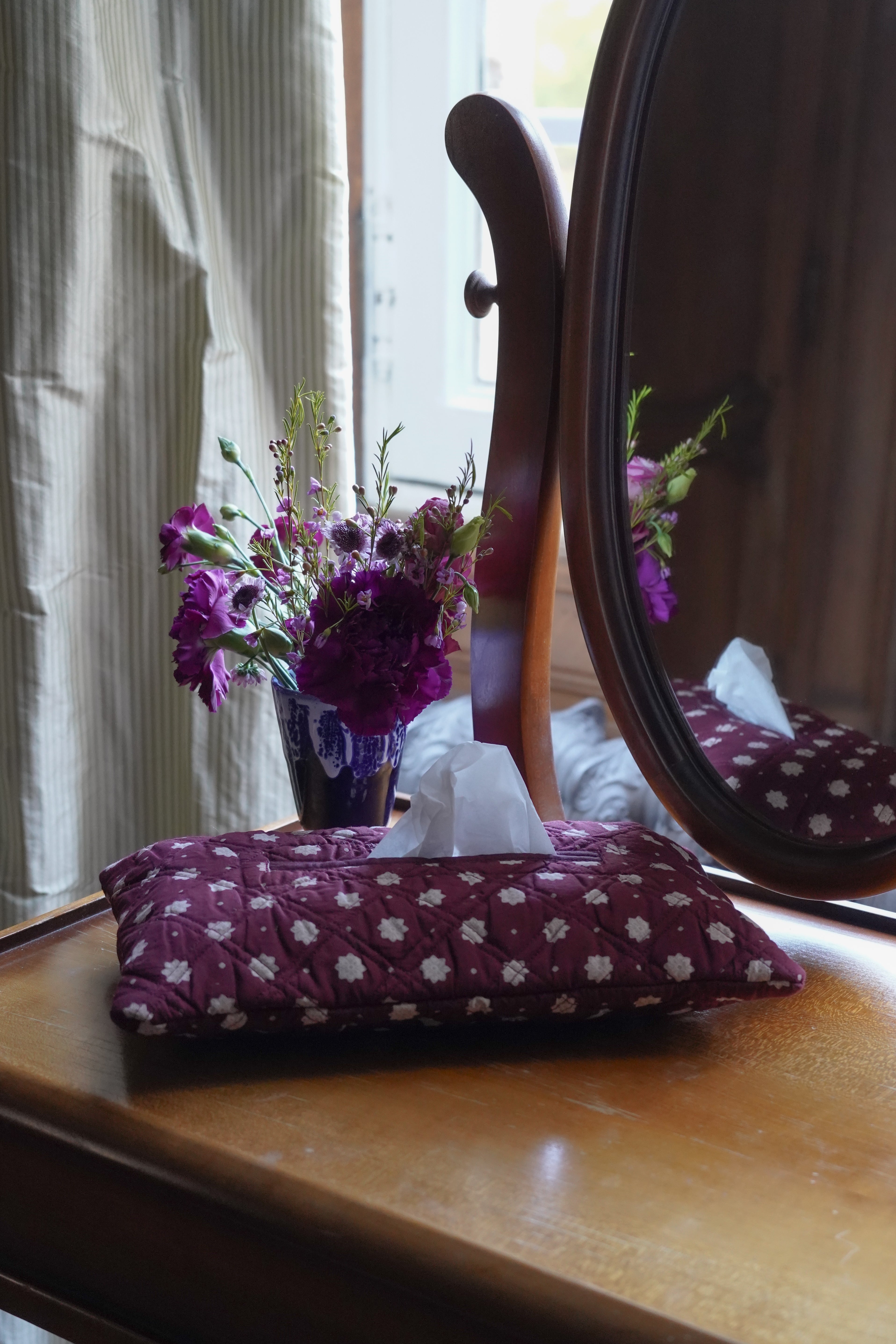 Couvre boîte à mouchoirs en coton quilté. Adapté aux boîtes à mouchoirs classiques rectangulaires. Vous pouvez insérer la boîte directement dans la housse ou y intégrer les mouchoirs.
