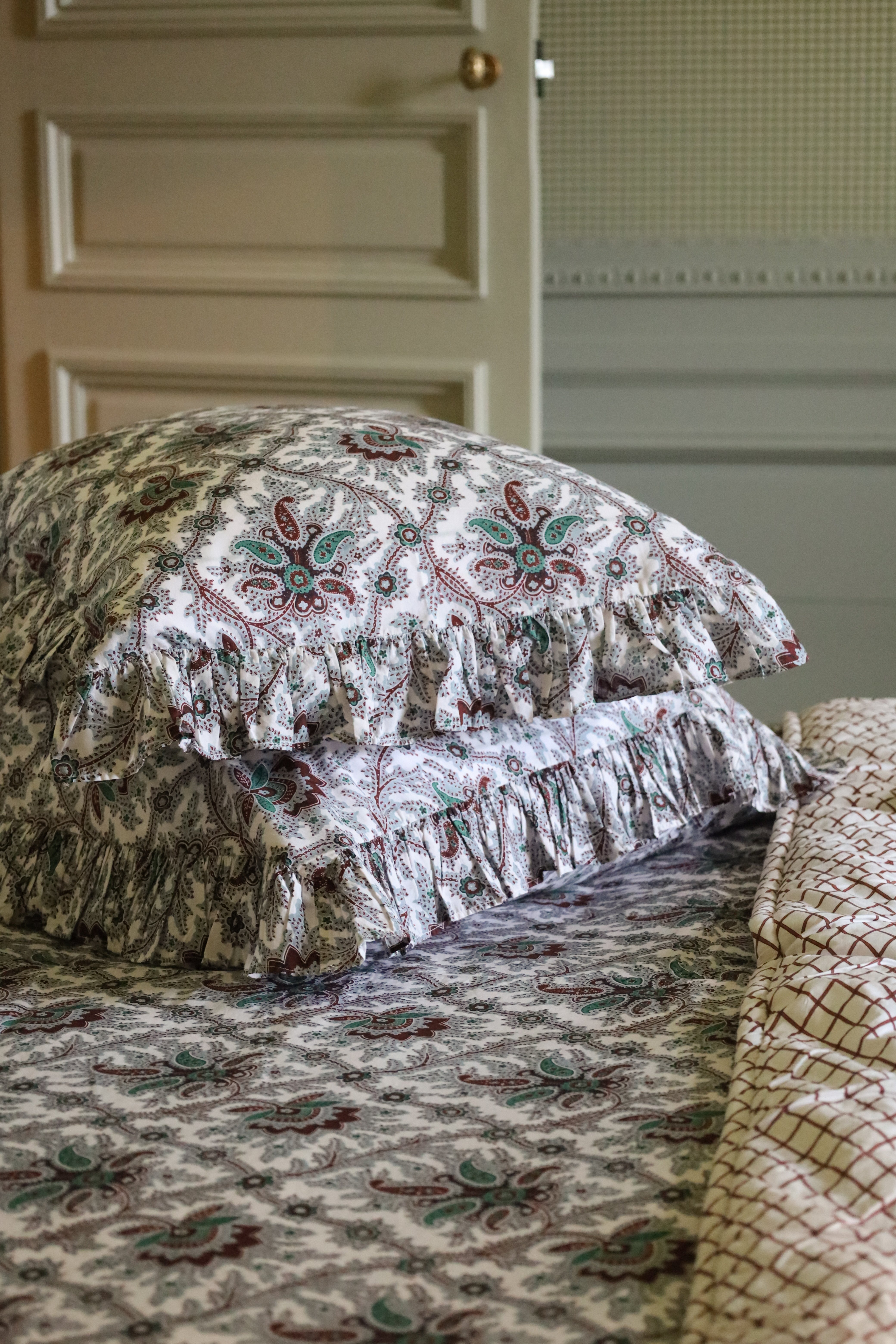 Taie d'oreiller Carrée à volant Cachemire Ivoire