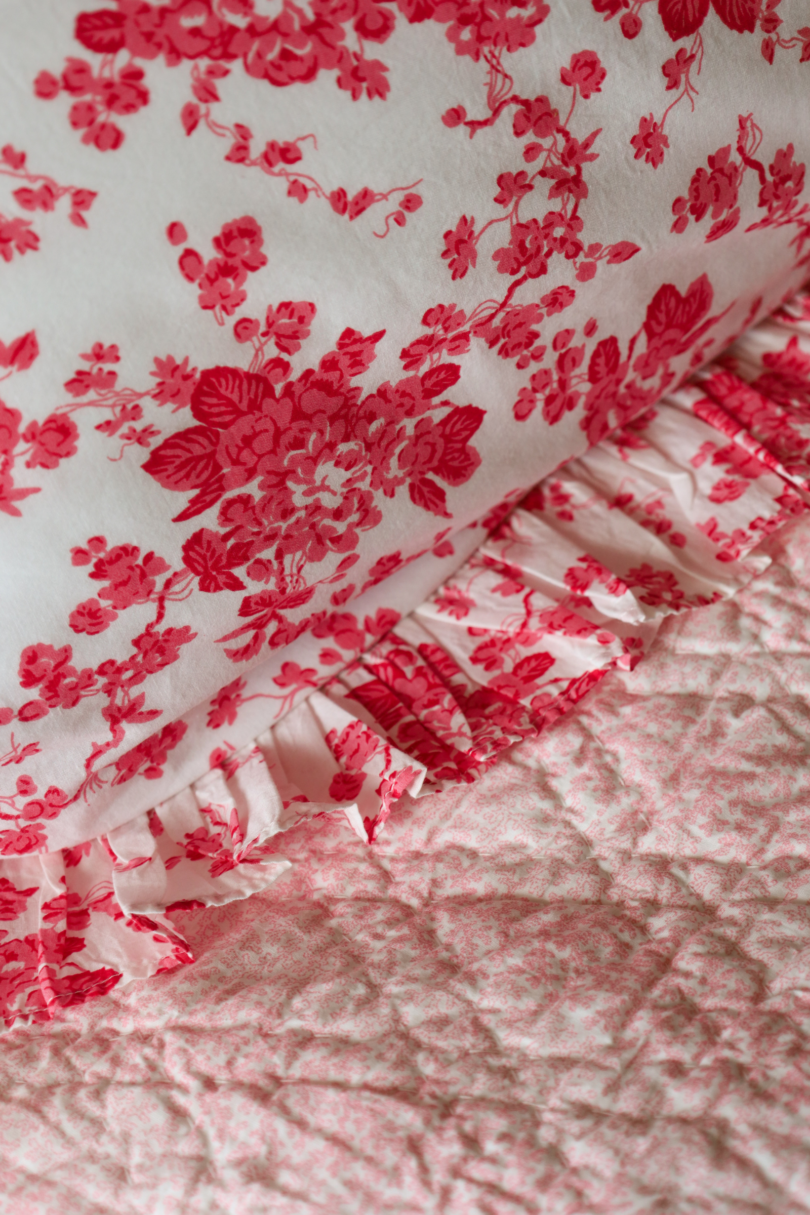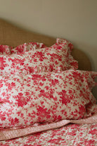 Taie d'oreiller carré à volant en coton imprimé Fleur Rose.