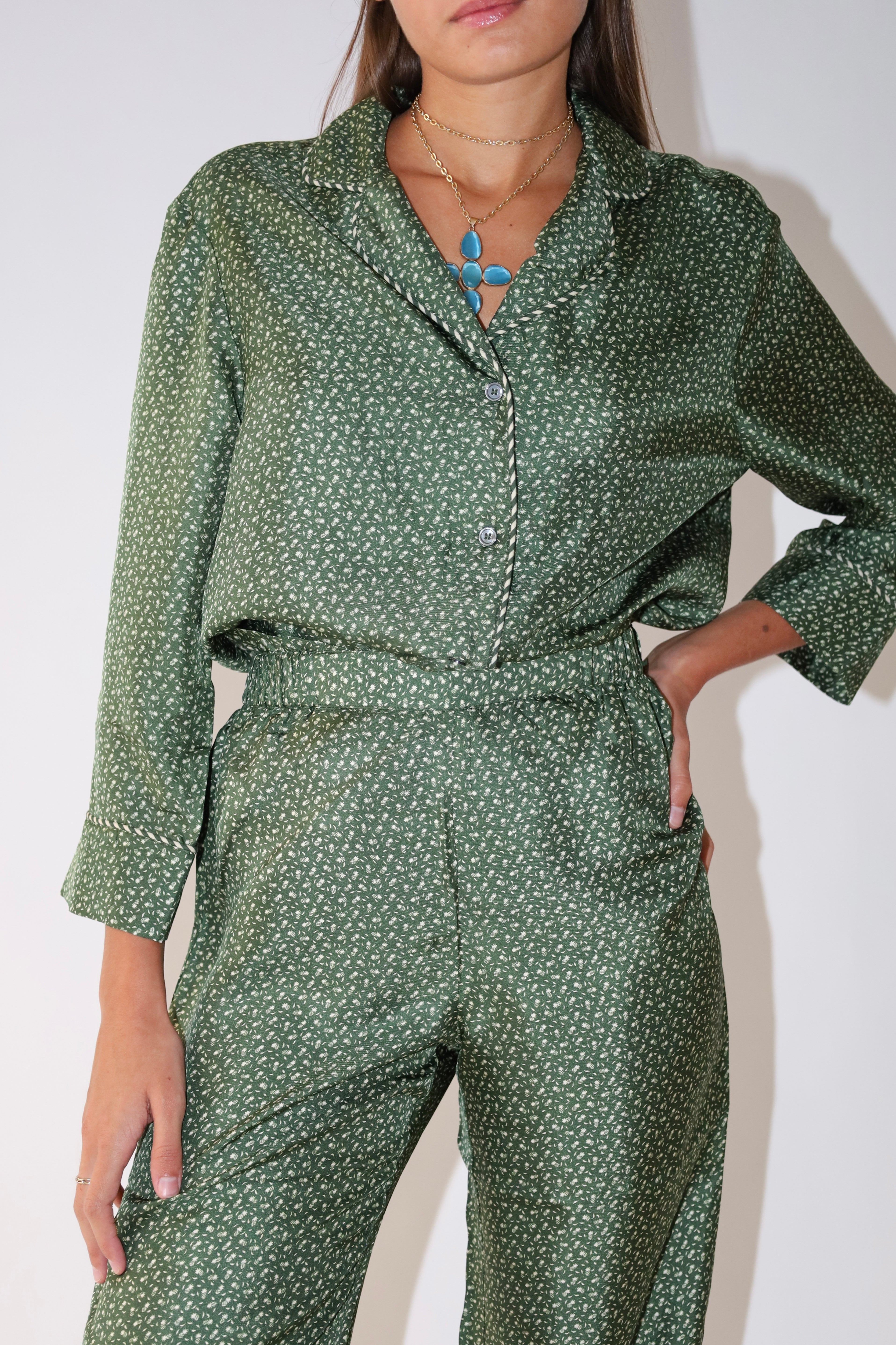 Pantalon Ramatuelle en soie Paisley Bronze fond Bordeaux