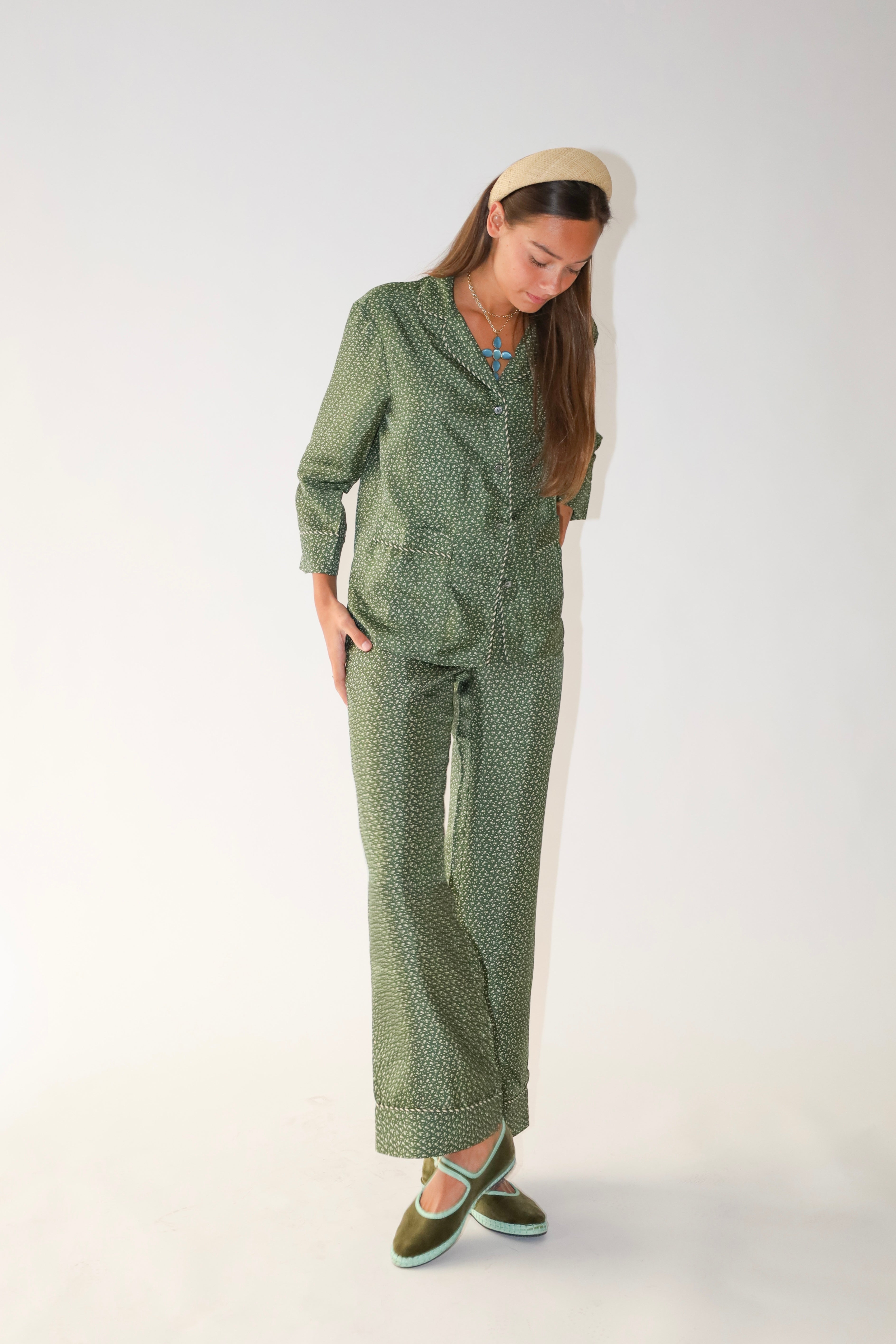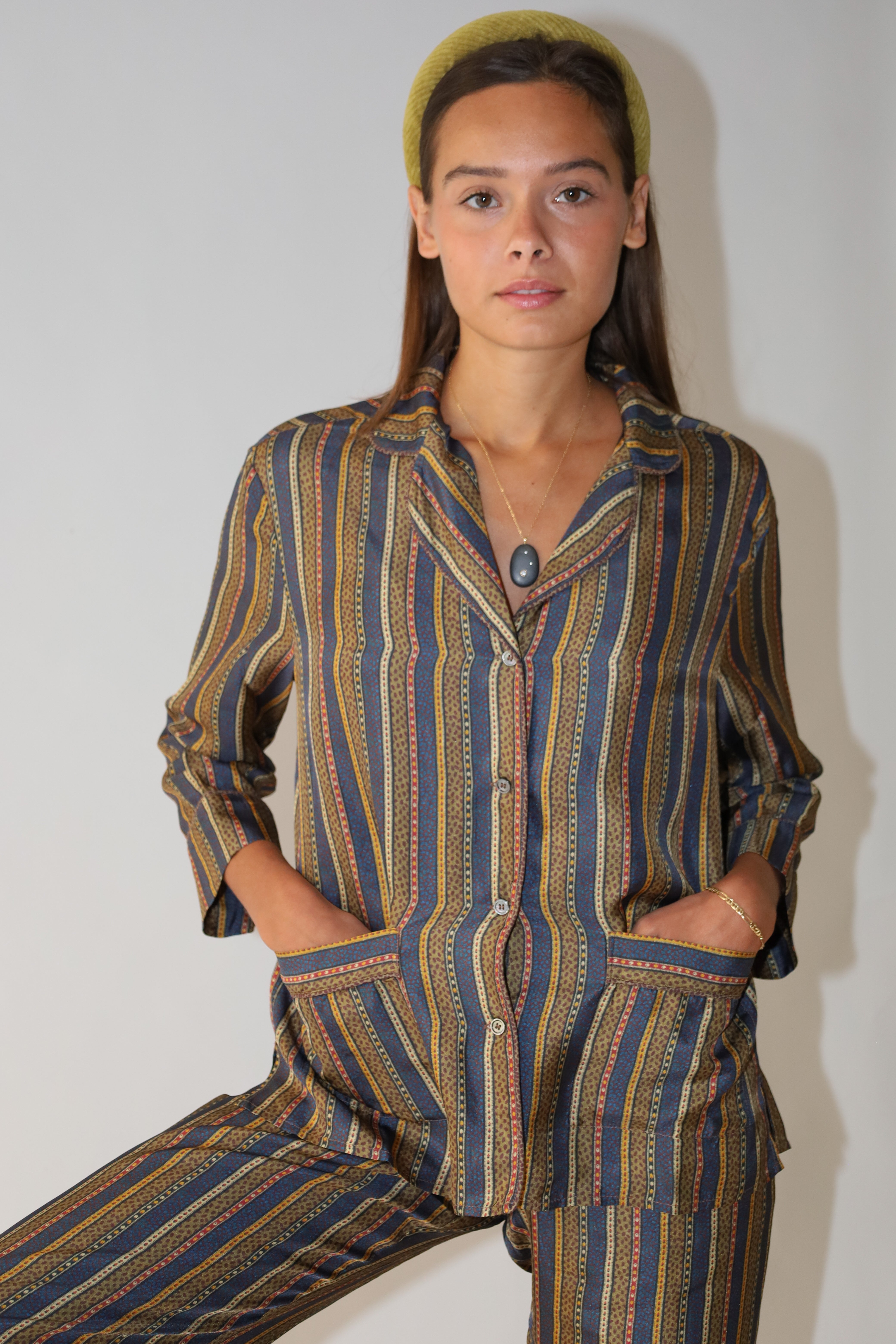 Pantalon Ramatuelle en soie Café Rayure Bleu