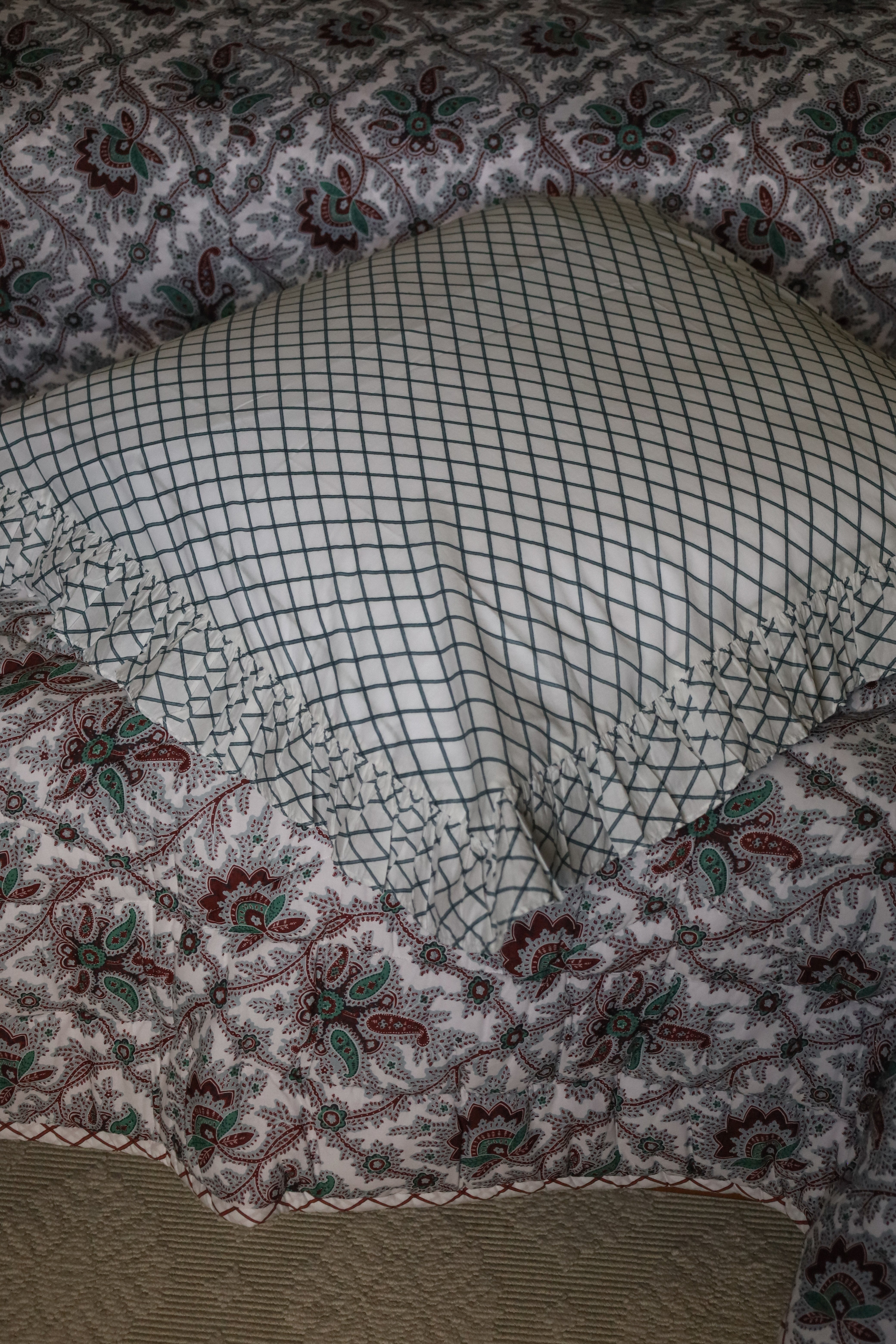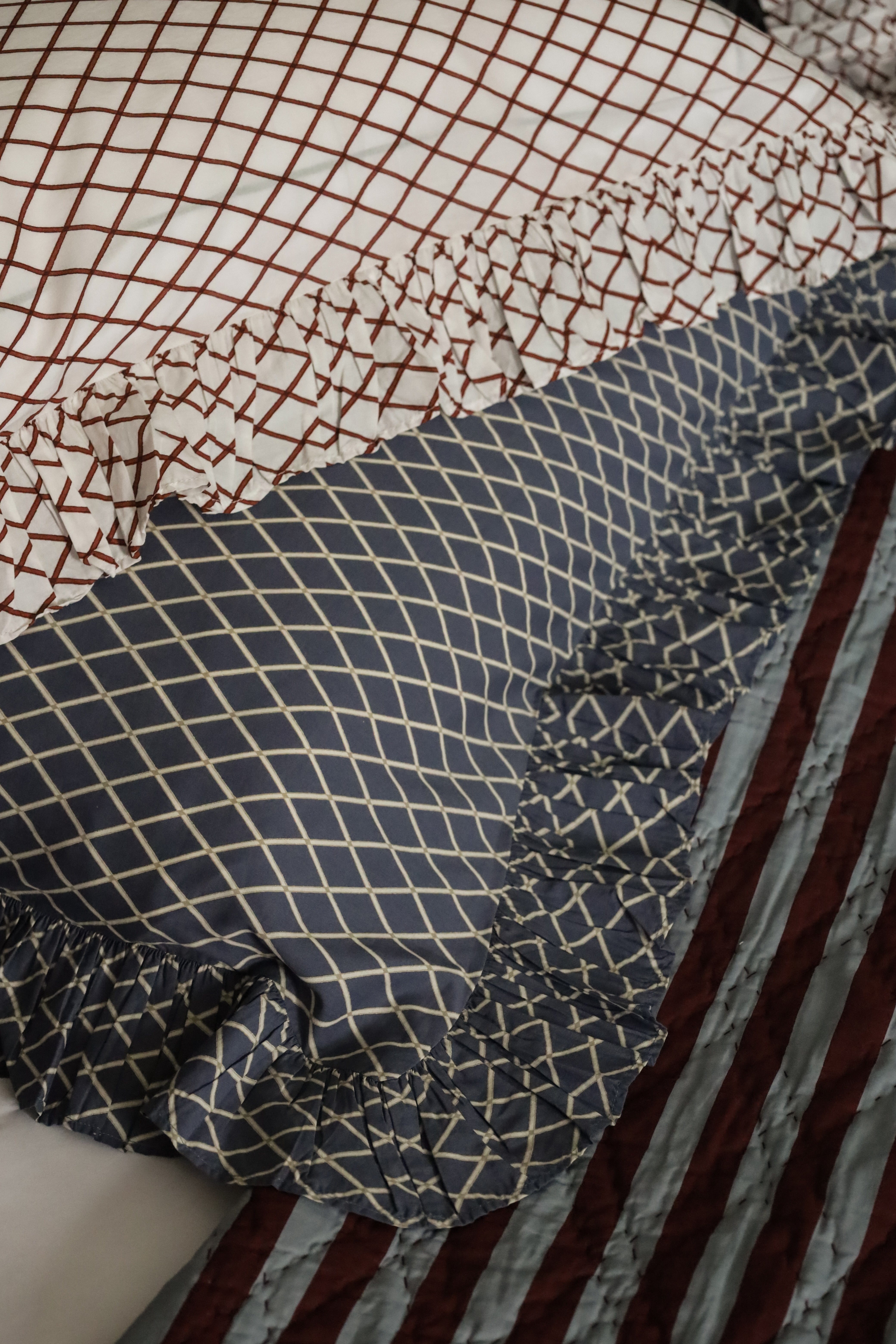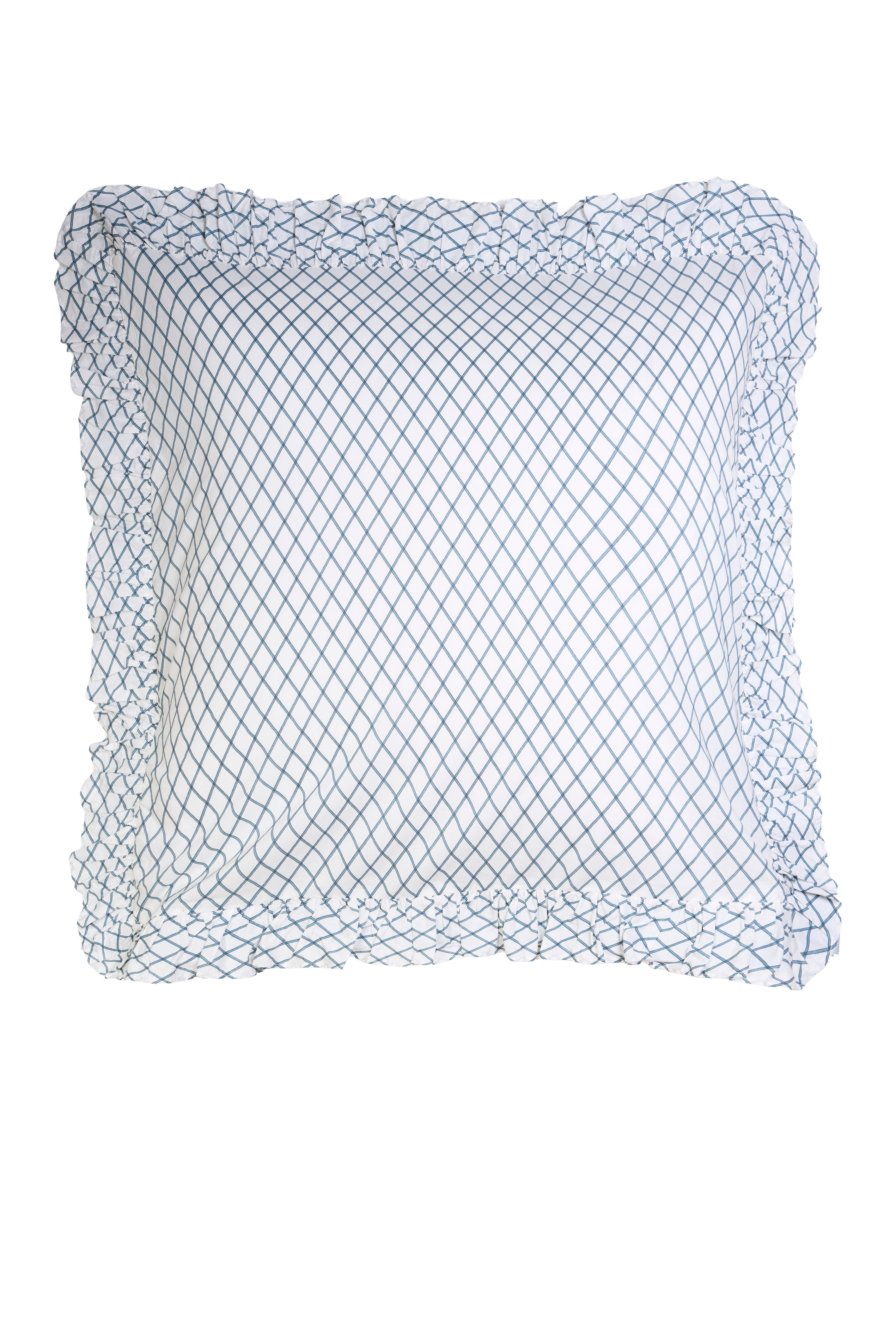 Taie d'oreiller Carrée à volant Losange Ecru & Bleu