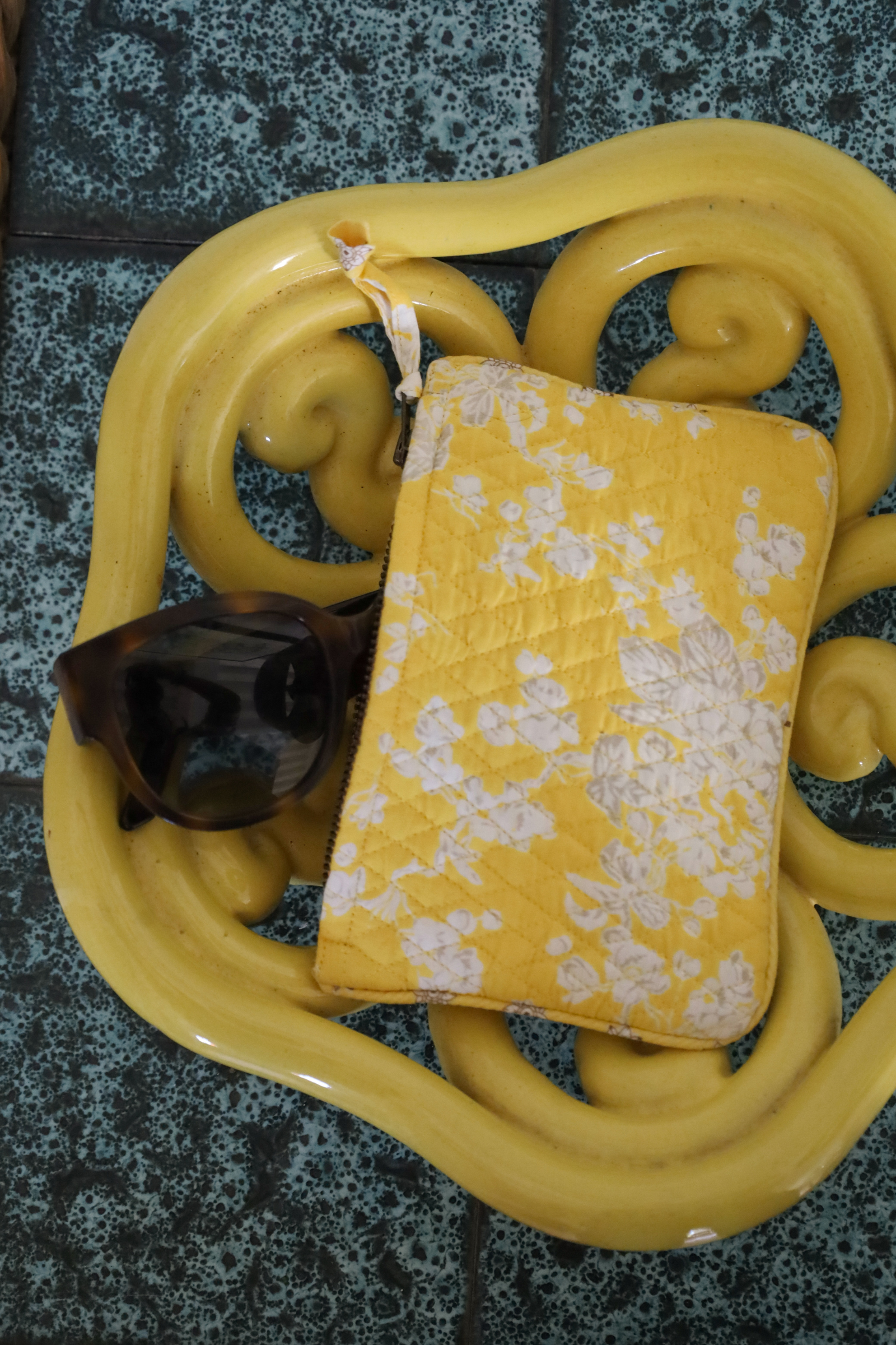 Trousse Plate en coton quilté imprimé Fleur Jaune x Mouche Jaune.