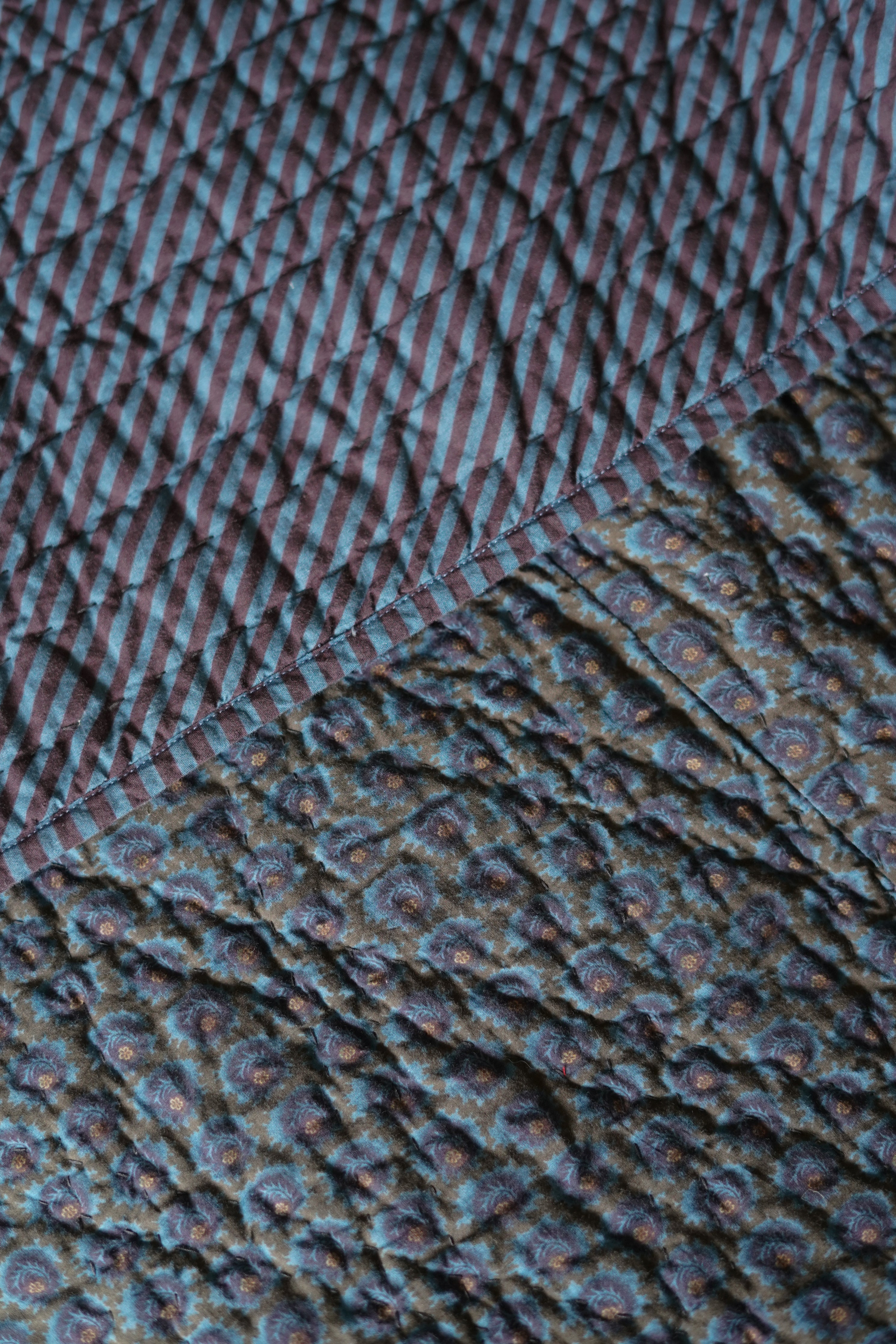Boutis Quilt Blue Bouquet & Blue Stripe