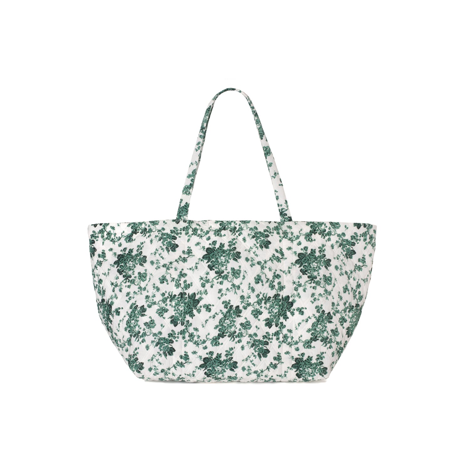 Large quilted cotton shopping bag with olive pompom print.
