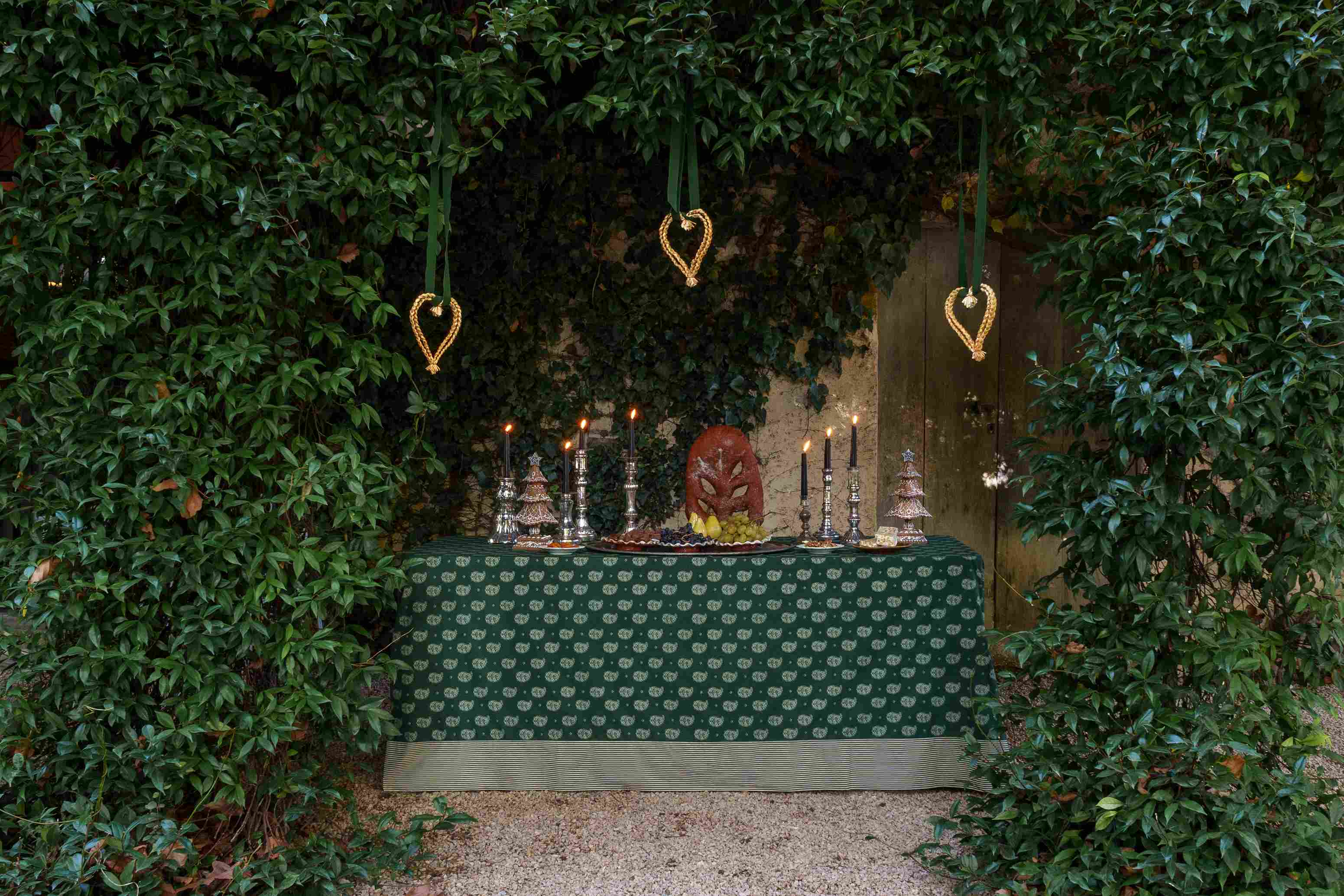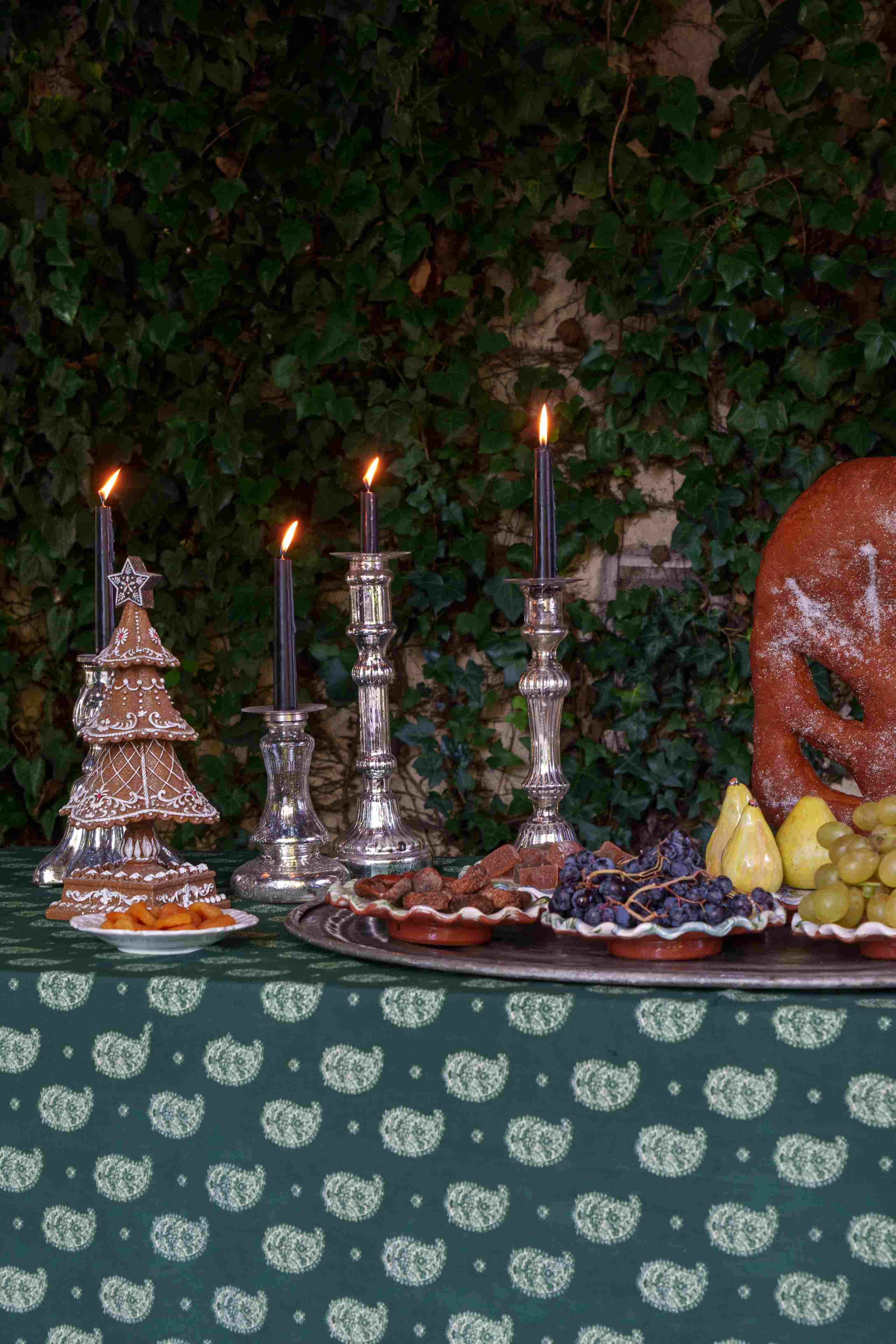 Ivory & Green Paisley Tablecloth x Khaki Stripe