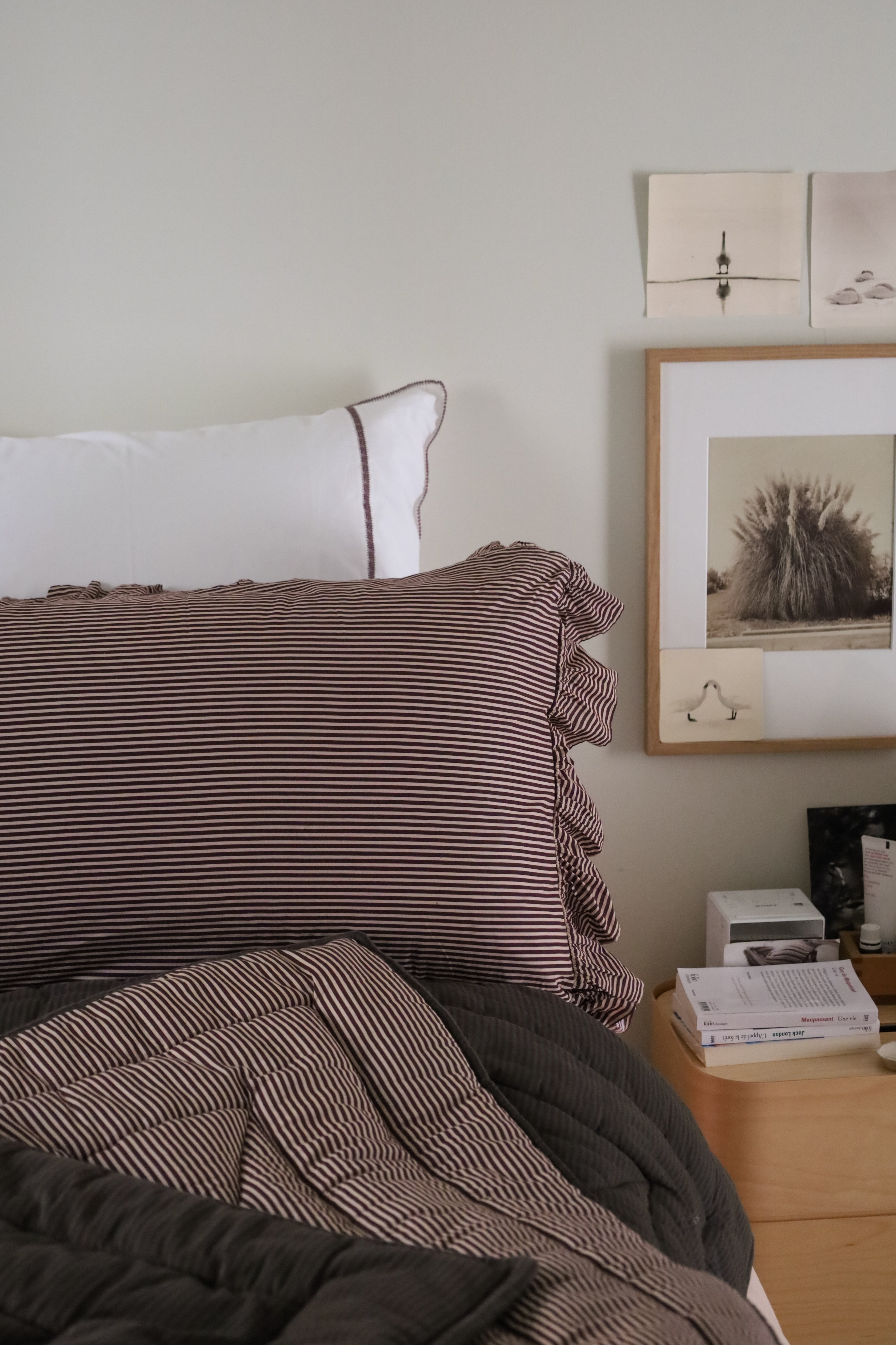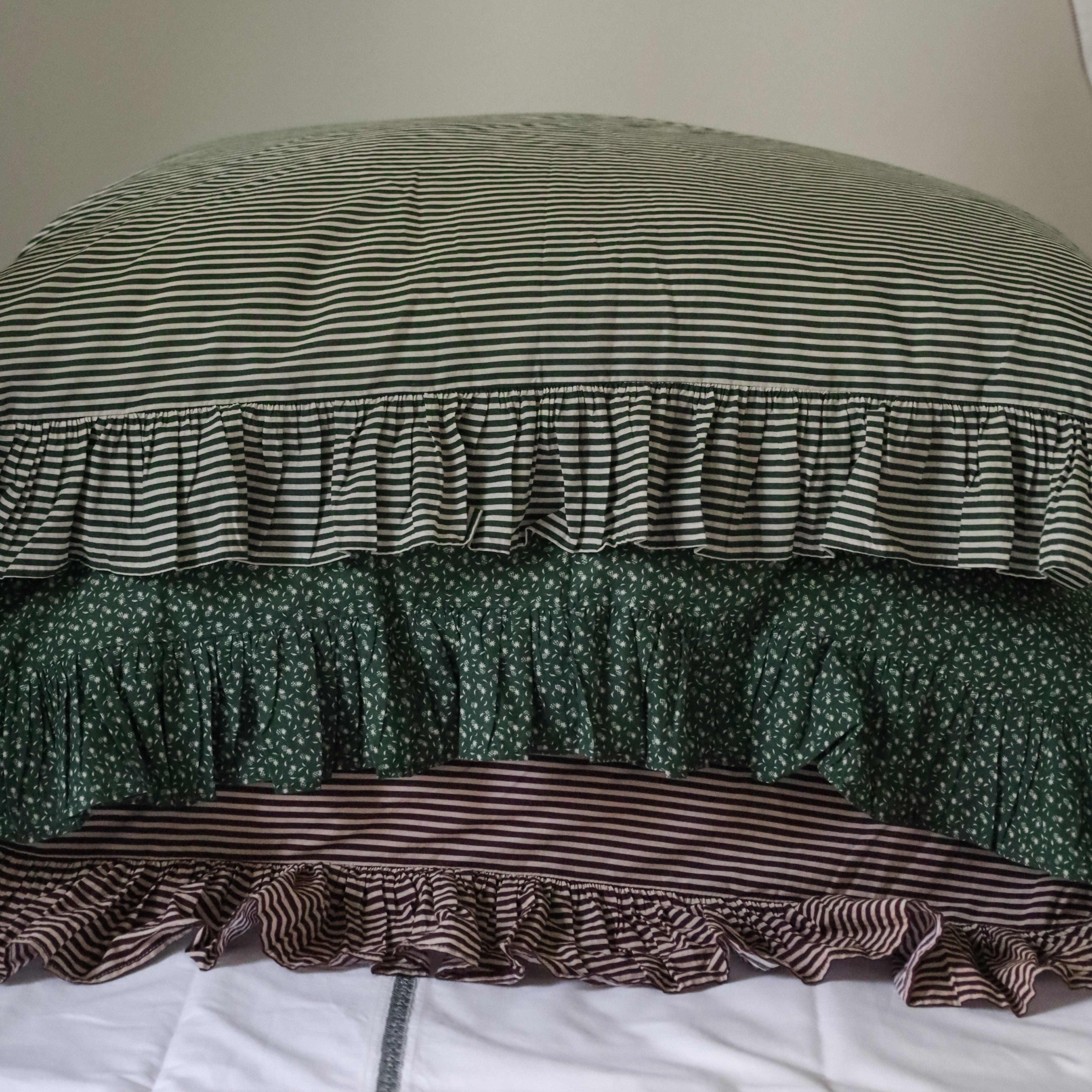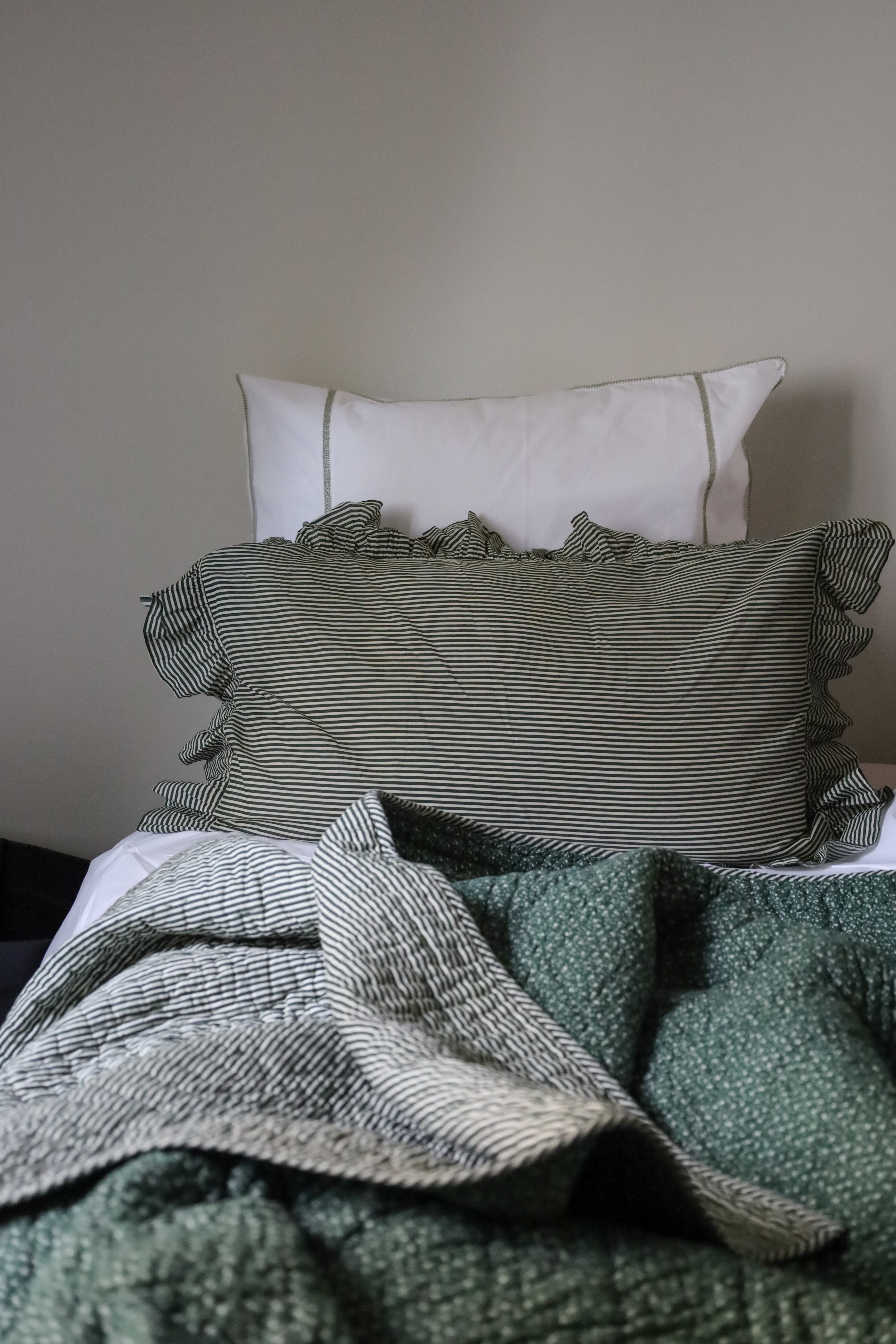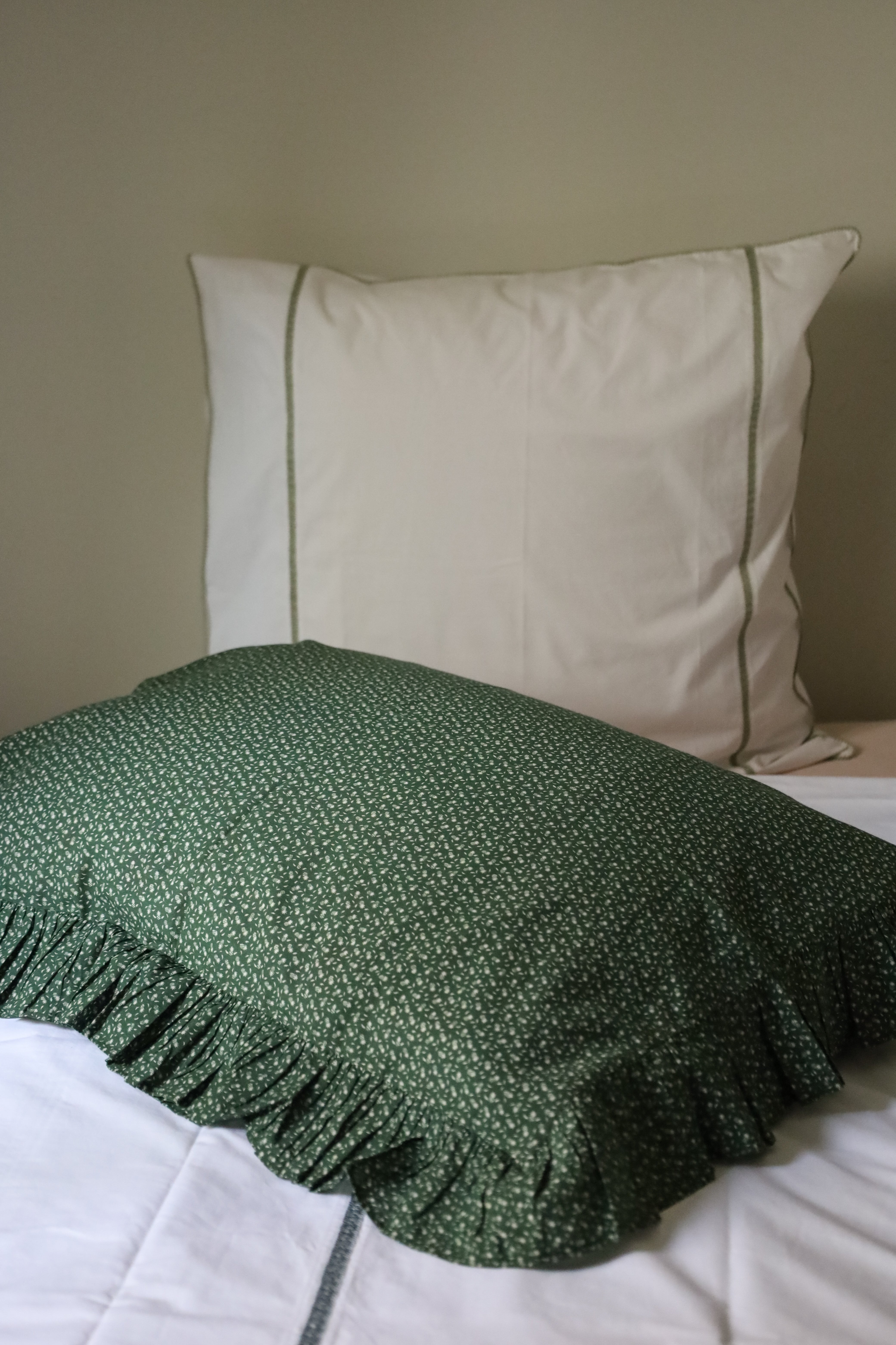 Rectangular ruffled pillowcases.