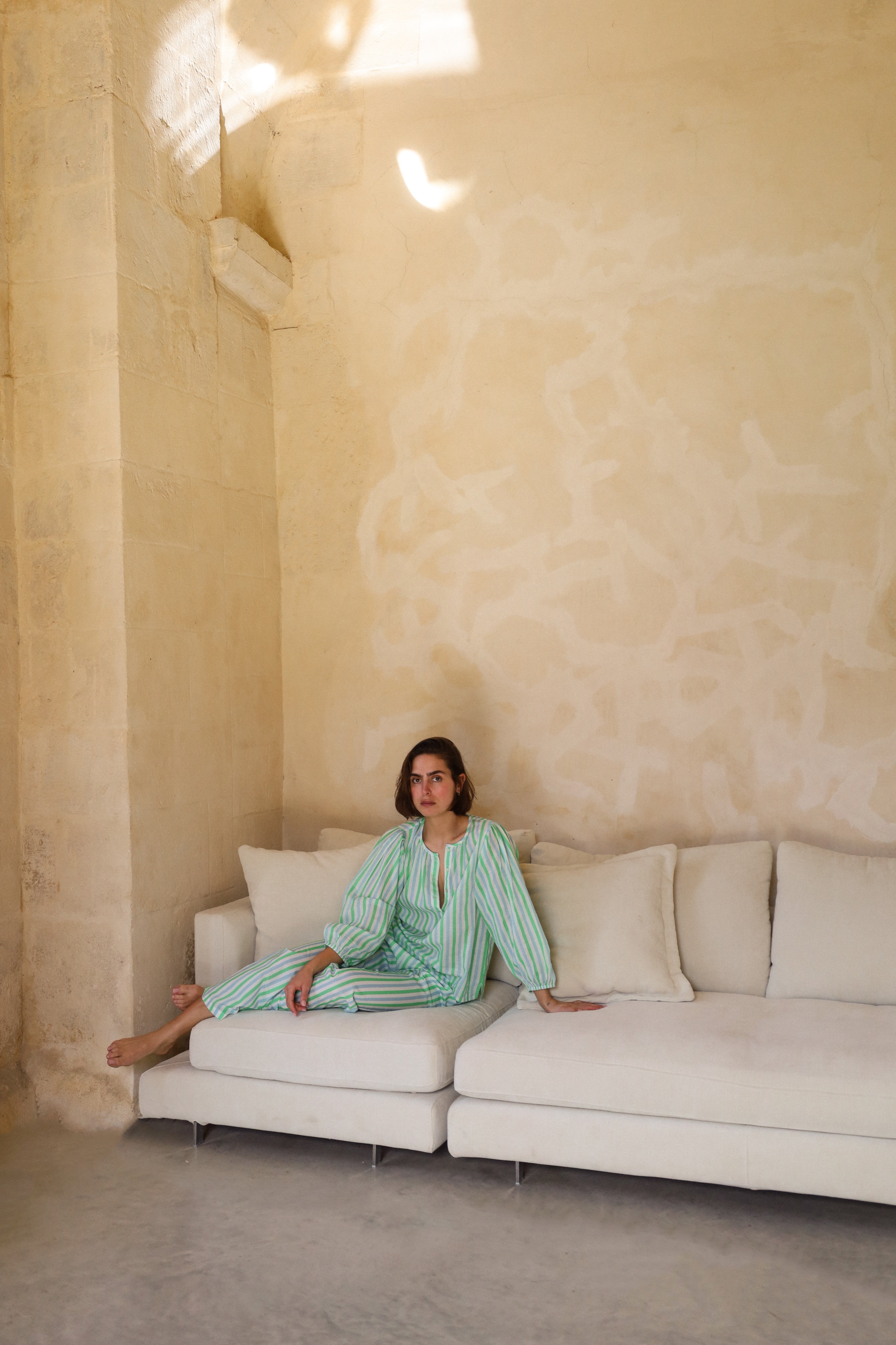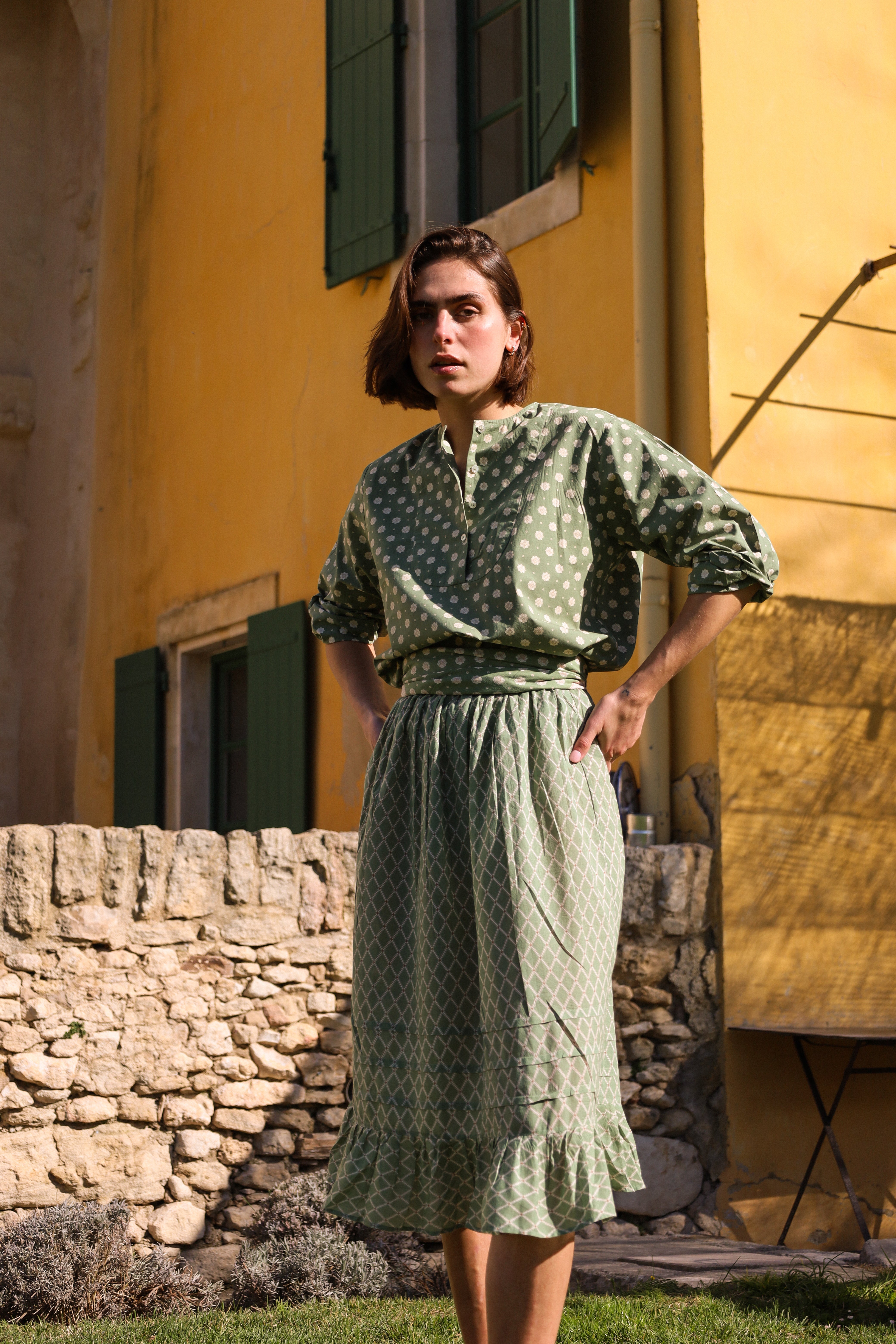 Ivory & Green Paisley Tablecloth x Khaki Stripe