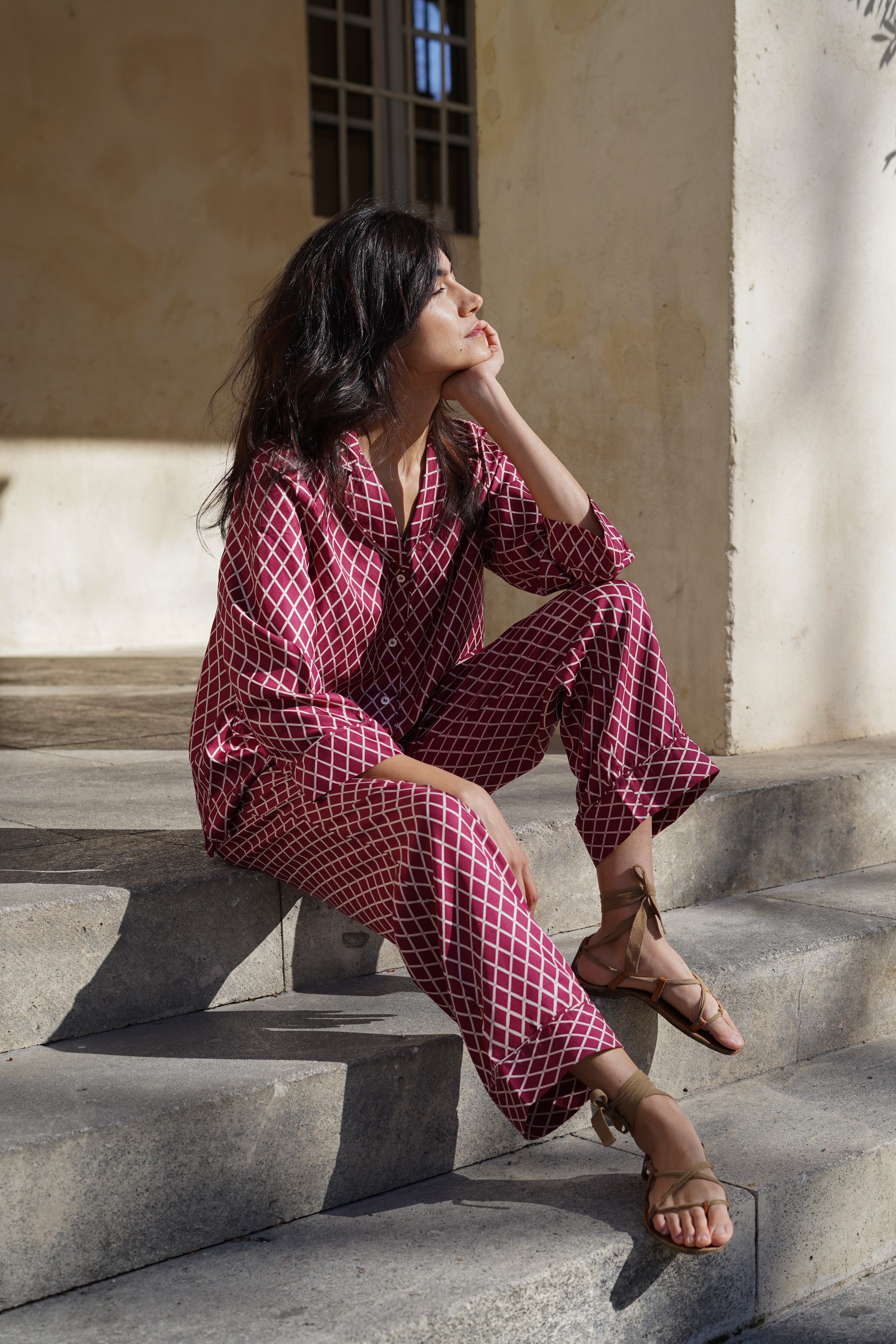 Ramatuelle trousers in Bordeaux cashmere silk