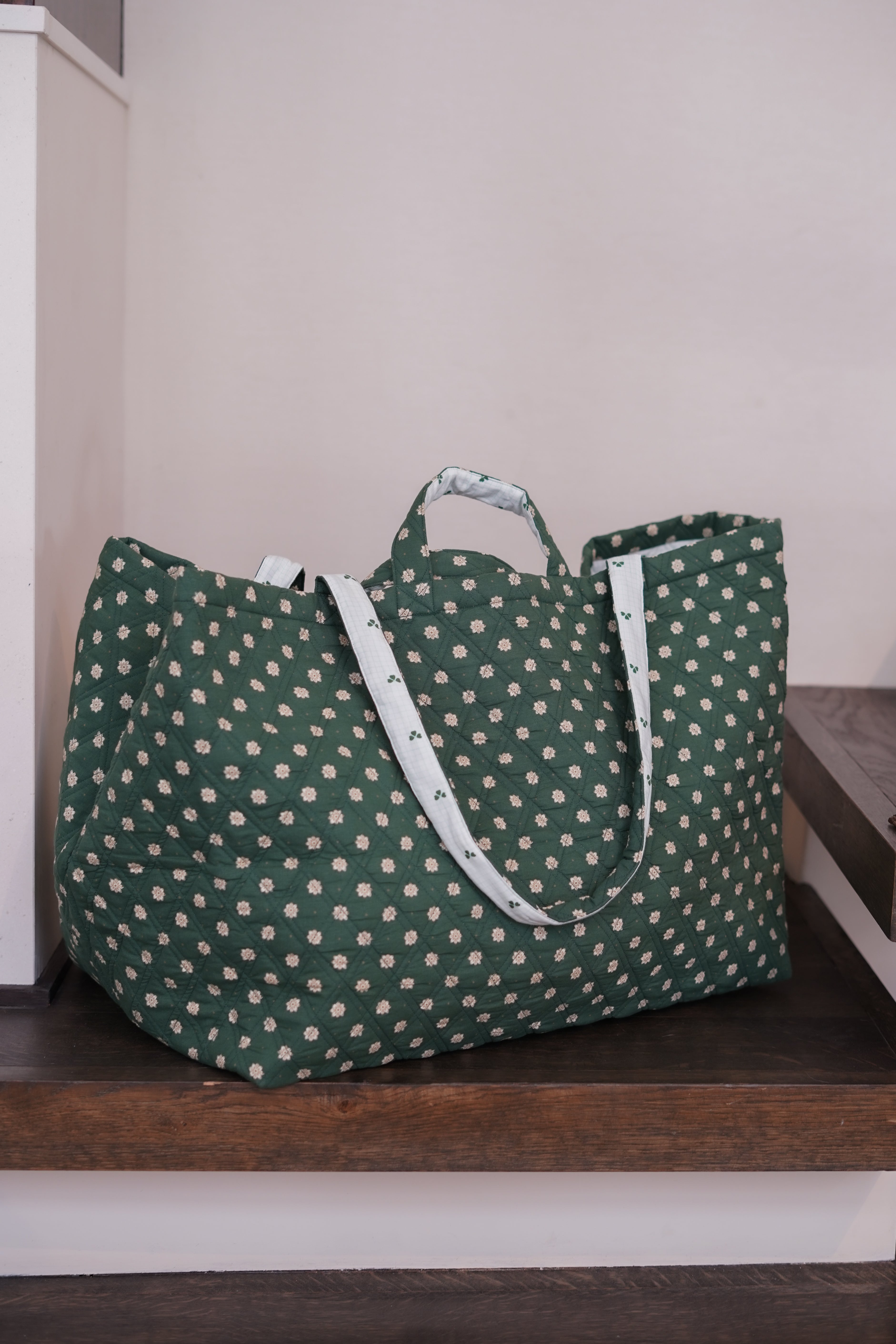 Grand cabas XL en coton quilté imprimé Mouche Vert x Petit Trèfle.