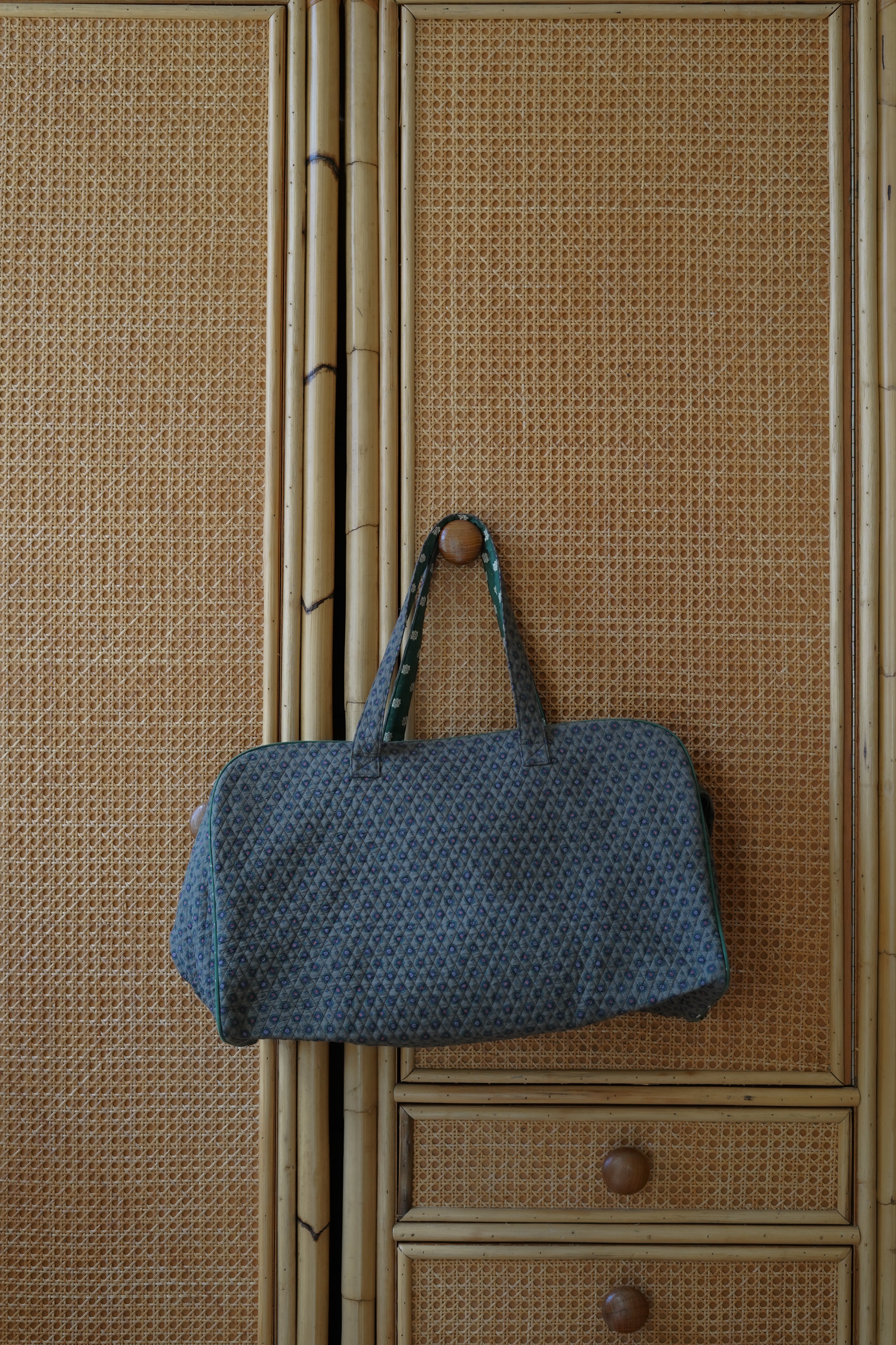 Le Sac Week-end Pastille Marron x Mouche Vert est un grand sac de voyage en coton quilté idéal pour les escapades, les courts séjours ou une valise principale légère. Confectionné avec soin et inspiré par l’art de vivre provençal de Le Château de Ma Mère, ce modèle se distingue par son style chic et décontracté.