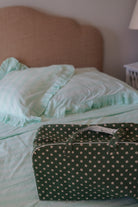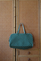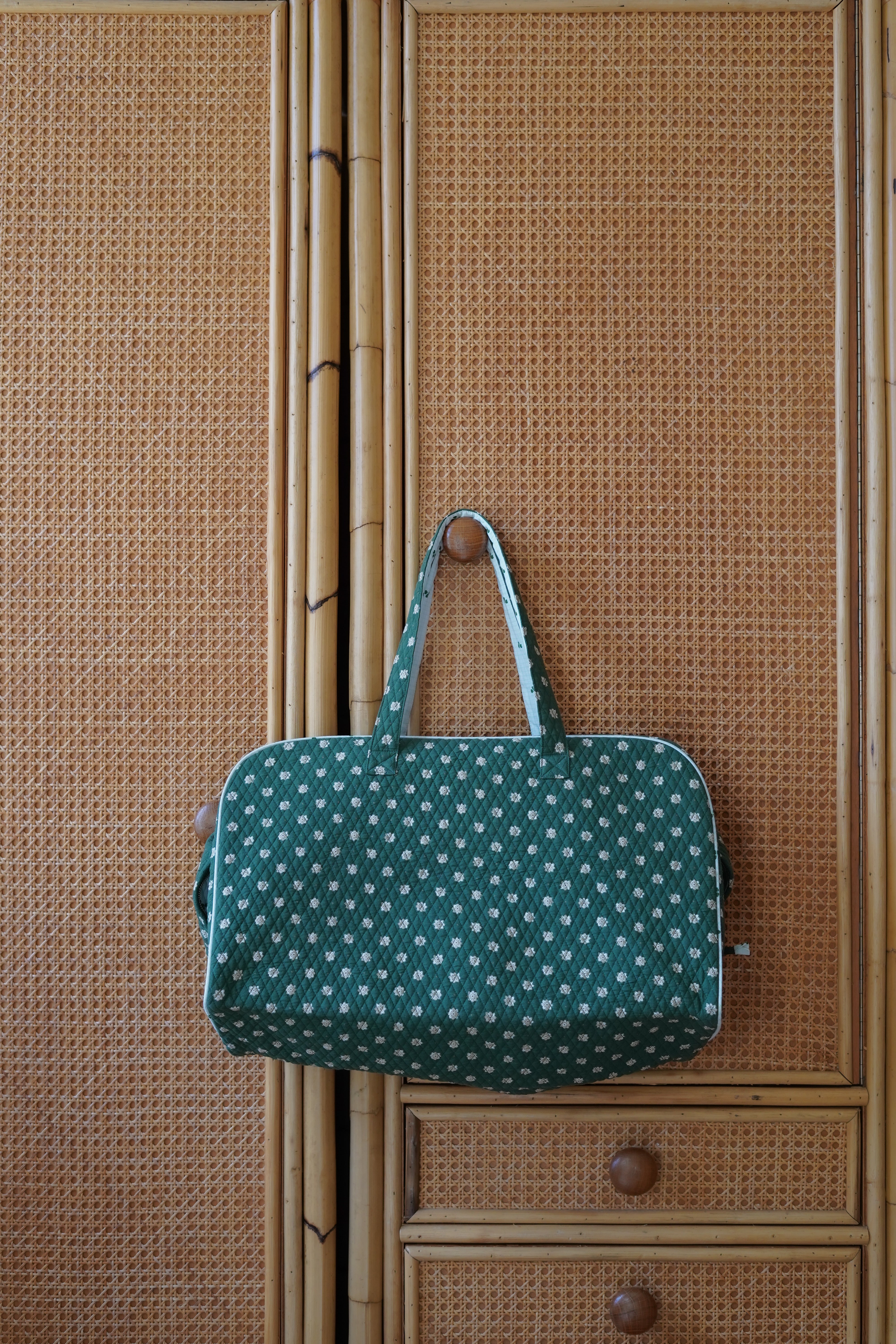 Le Sac Week-end Joy Mouche Vert x Petit Trèfle est un grand sac de voyage en coton quilté idéal pour les escapades, les courts séjours ou une valise principale légère. Confectionné avec soin et inspiré par l’art de vivre provençal de Le Château de Ma Mère, ce modèle se distingue par son style chic et décontracté.