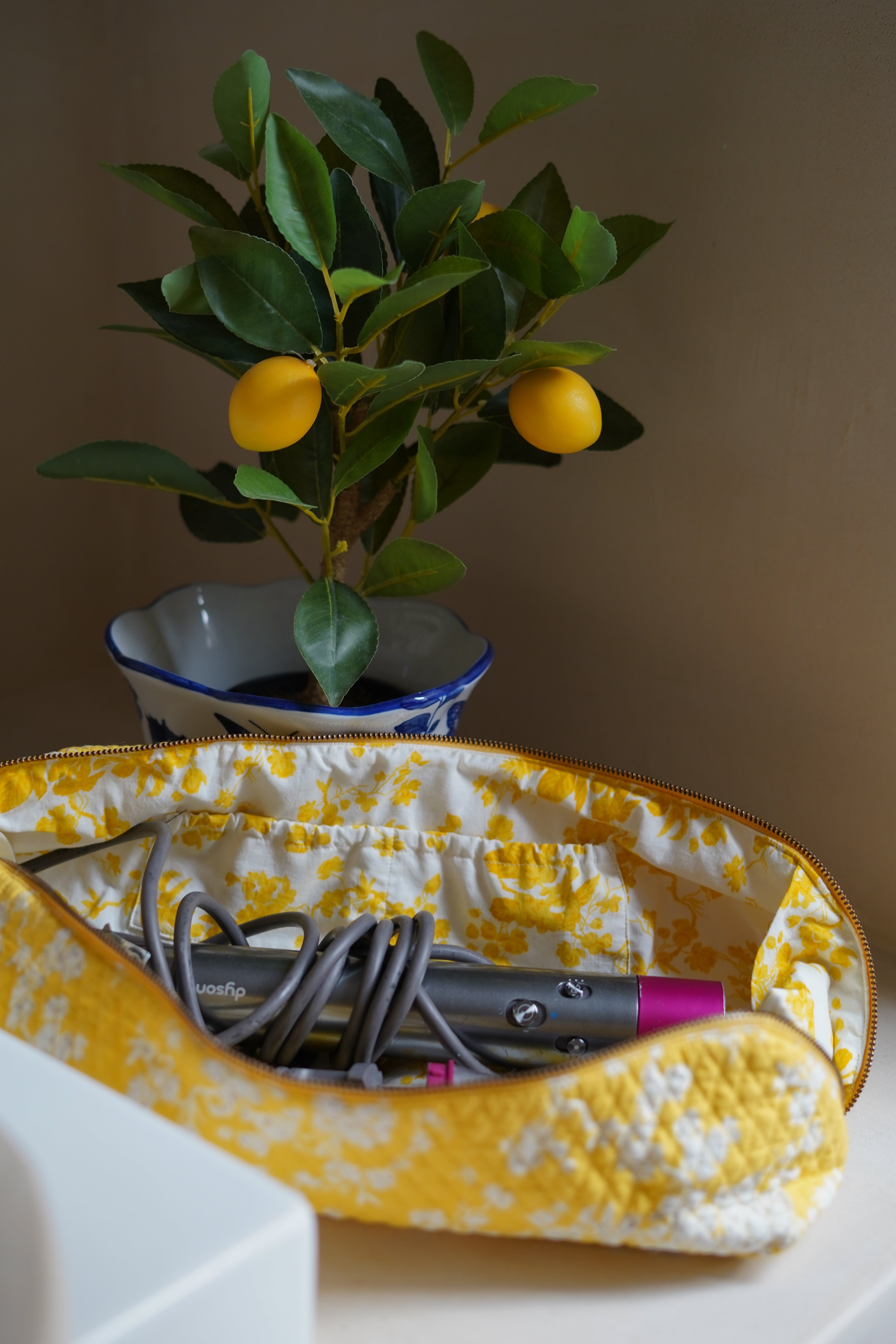 Trousse Babyliss en coton imprimé Fleur Jaune.
