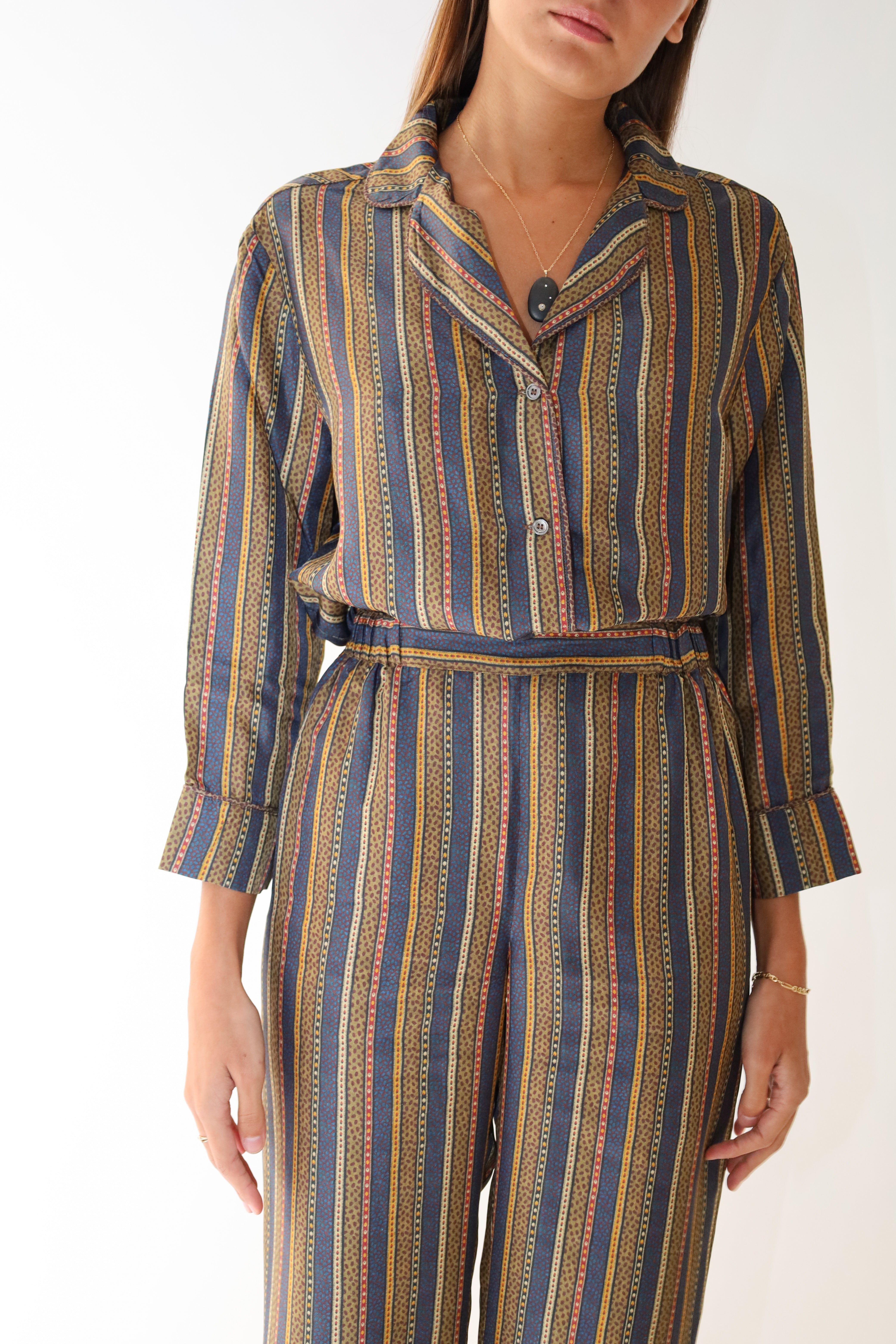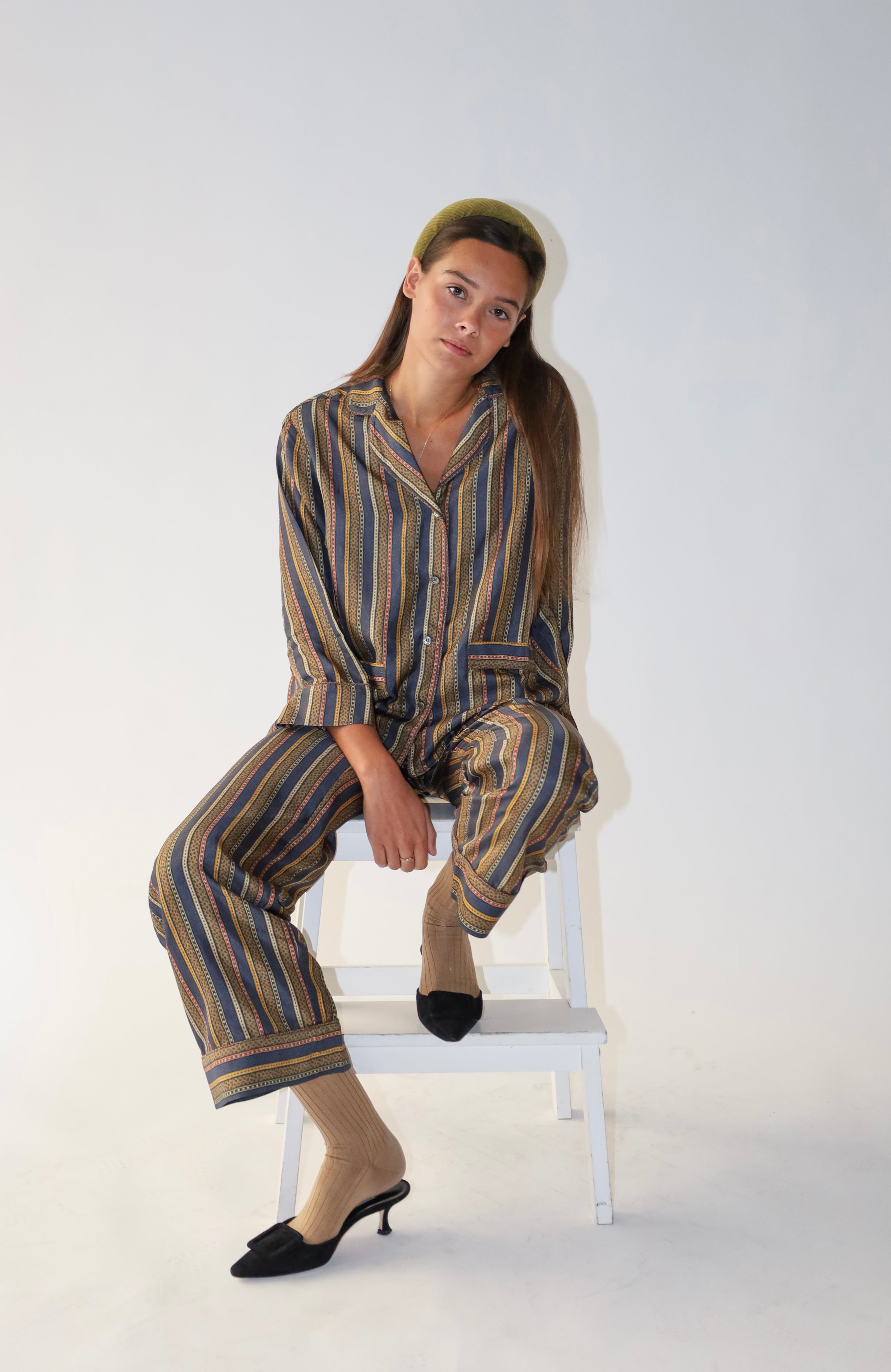 Pantalon Ramatuelle en soie Café Rayure Bleu
